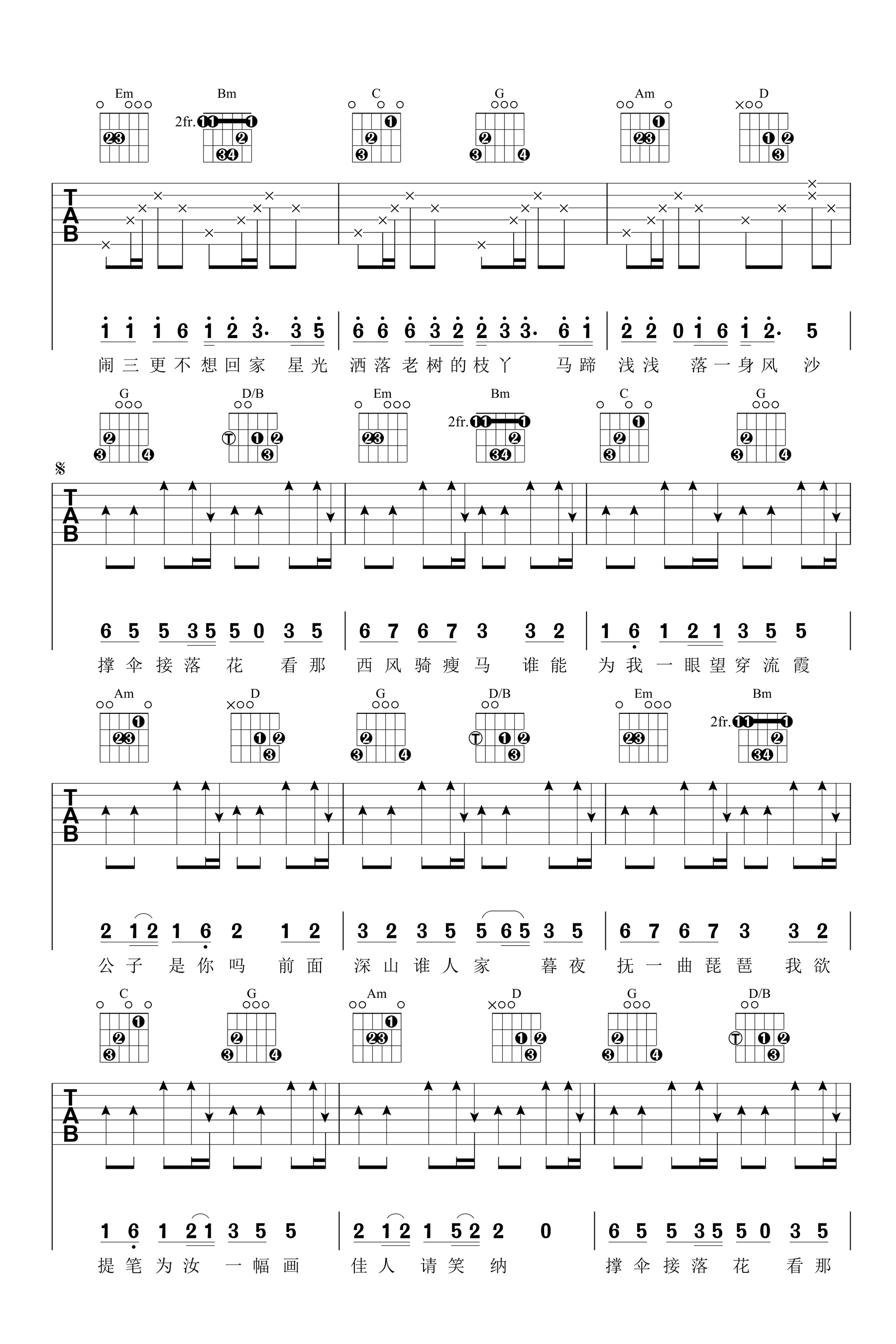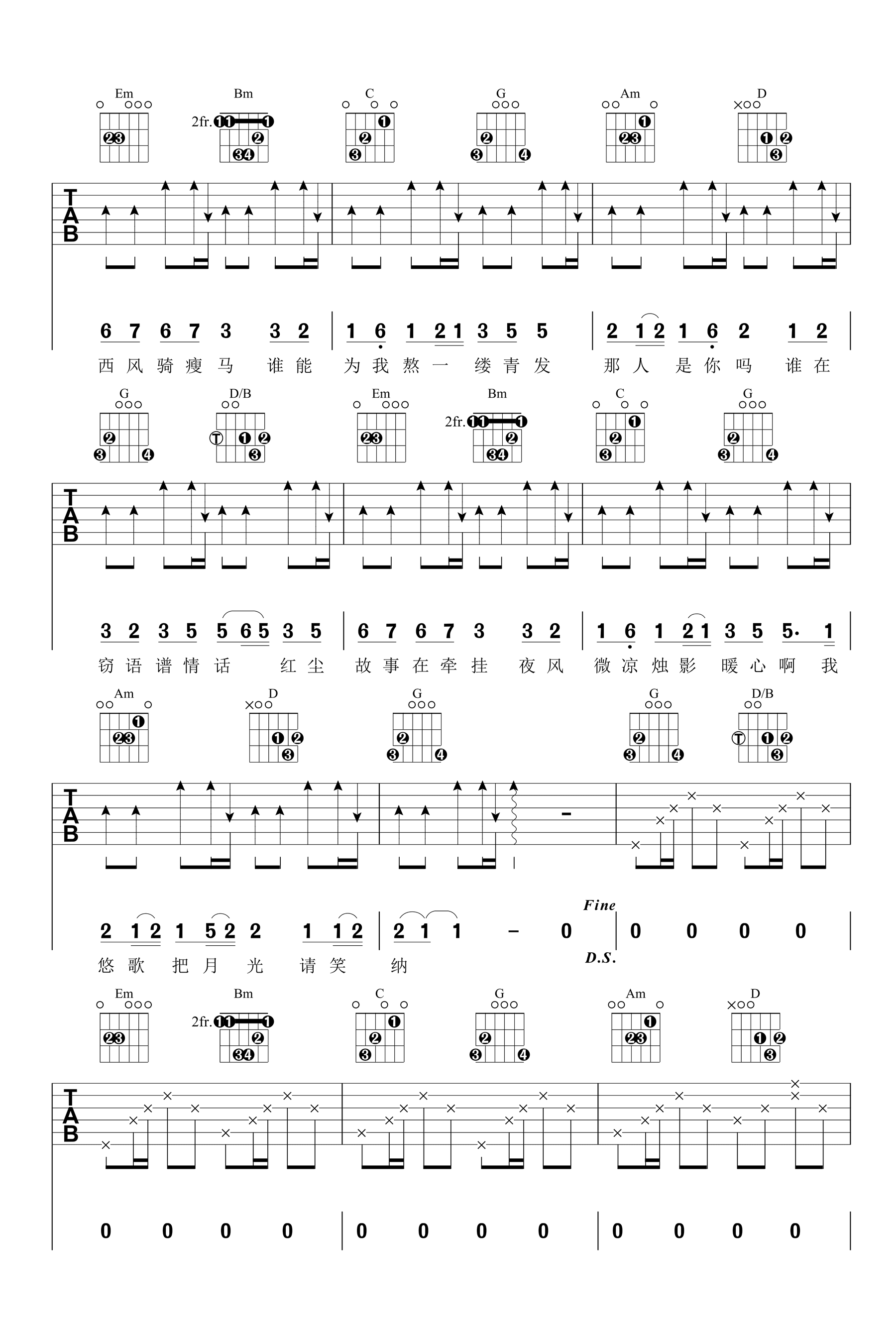 曲谱介绍: 笑纳吉他谱_花僮_《笑纳》G调原版编配_高清弹唱六线谱分享,《笑纳》是由花僮演唱的一首中国风歌曲,小姐姐声音极其清澈,一字一句听到的是一种活泼俏皮,而且拥有生命且有活力的感觉,词意古风悠然,曲境温婉清新,旋律优美动听,国粤流转自然,千万别错过。歌曲原调为B调,这里采用了G调指法进行编配,演唱时变调夹夹4品可回原调,曲谱整体难度不大,比较容易练习。