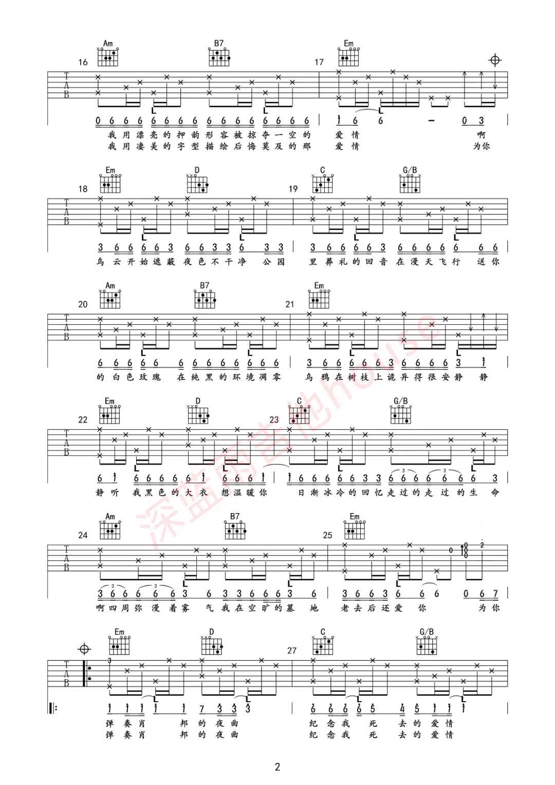 夜曲吉他谱 - 周杰伦 - G调吉他弹唱谱 - 原版