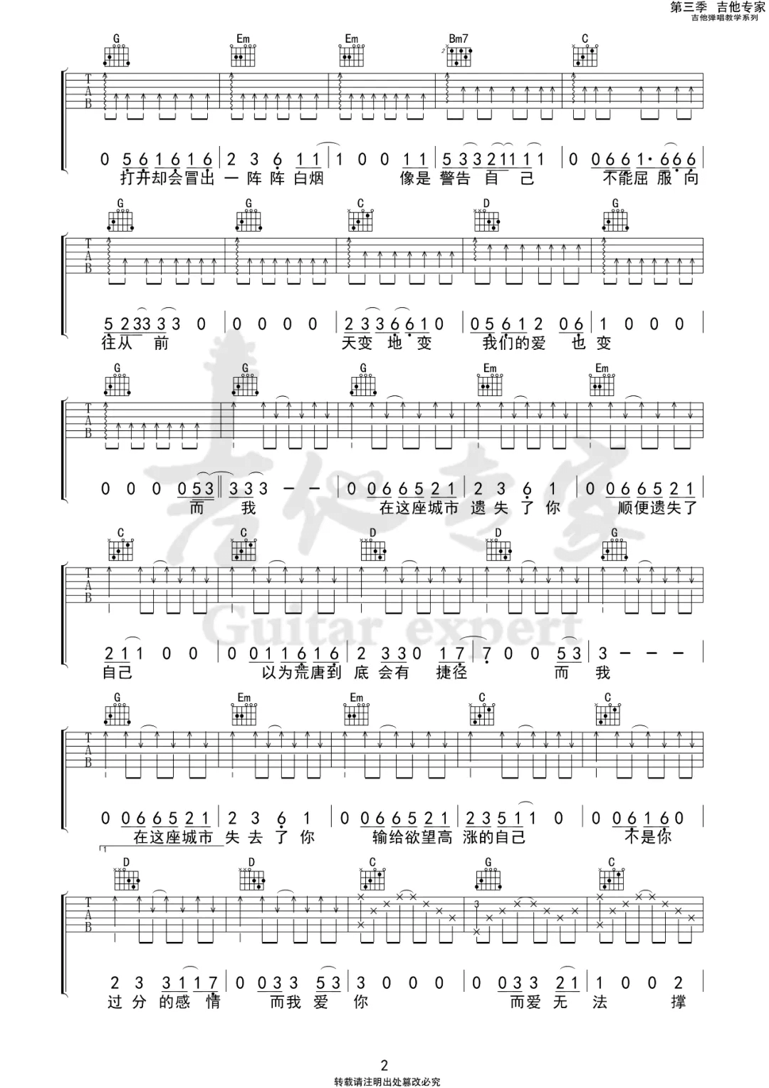 当前位置:琴谱网>吉他弹唱>在这座城市遗失了你