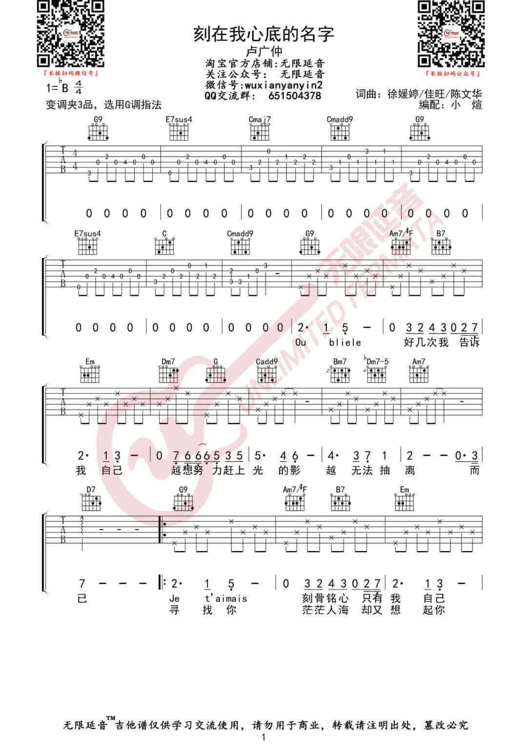 曲谱介绍: 《刻在我心底的名字》吉他谱_卢广仲_G调原版编配_弹唱六线谱分享,《刻在我心底的名字》是由卢广仲演唱的一首抒情歌曲,当一个名字需要以刻在心底的方式被留下时,就注定了是一场刻骨铭心却无法拥有彼此的感情。卢广仲的声音总是听似平淡,却让人不自觉循环播放。带着温柔中透着真挚的嗓音,这首《刻在我心底的名字》悲伤而纯情地诠释了电影《刻在你心底的名字》中苦涩的同X之爱。