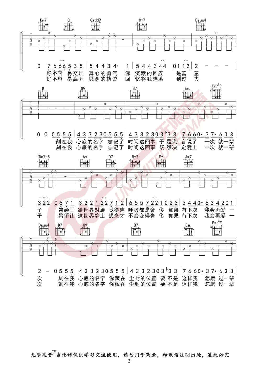 当前位置:琴谱网>吉他弹唱>刻在我心底的名字