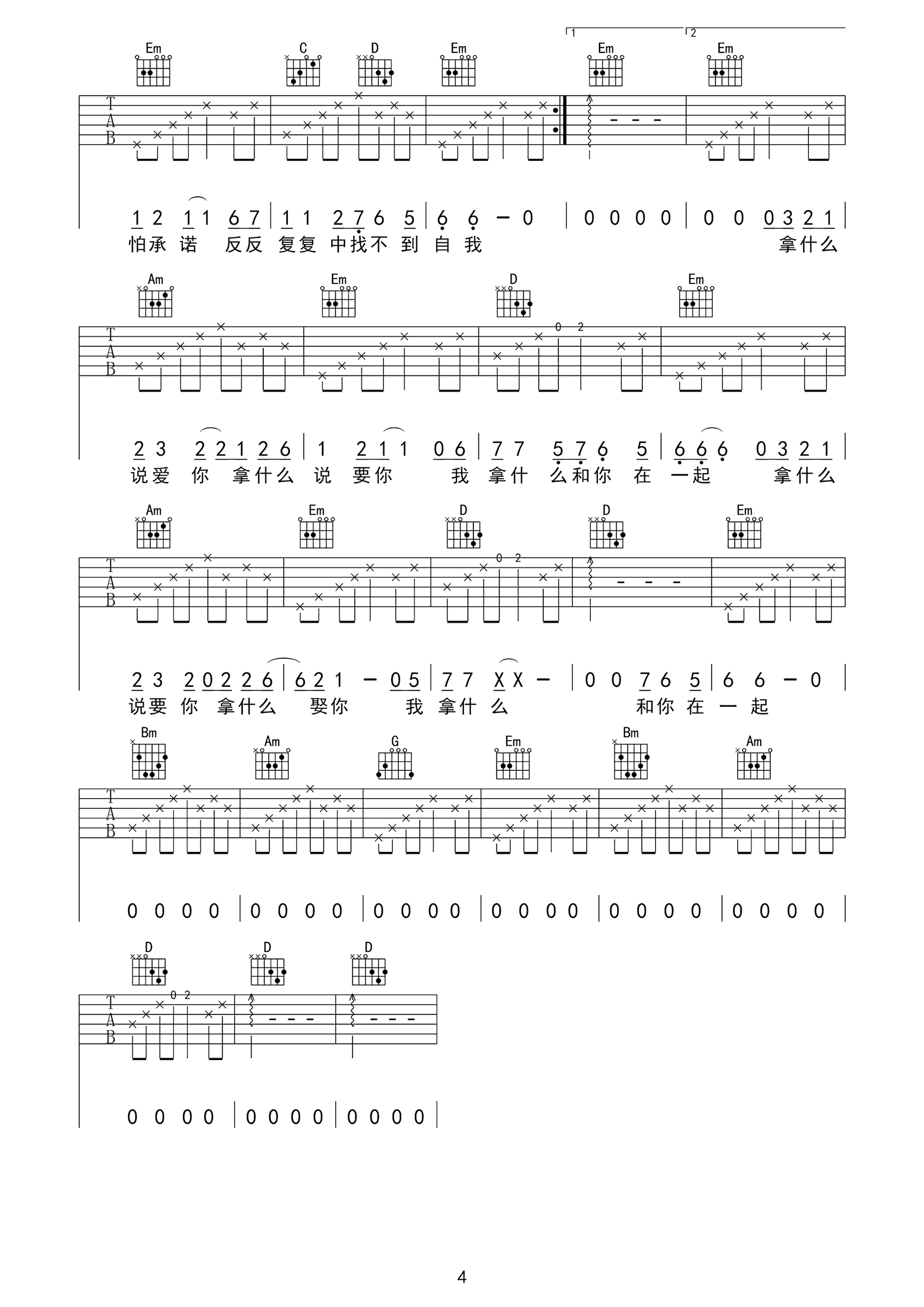 当前位置:琴谱网>吉他弹唱>凭什么说爱你