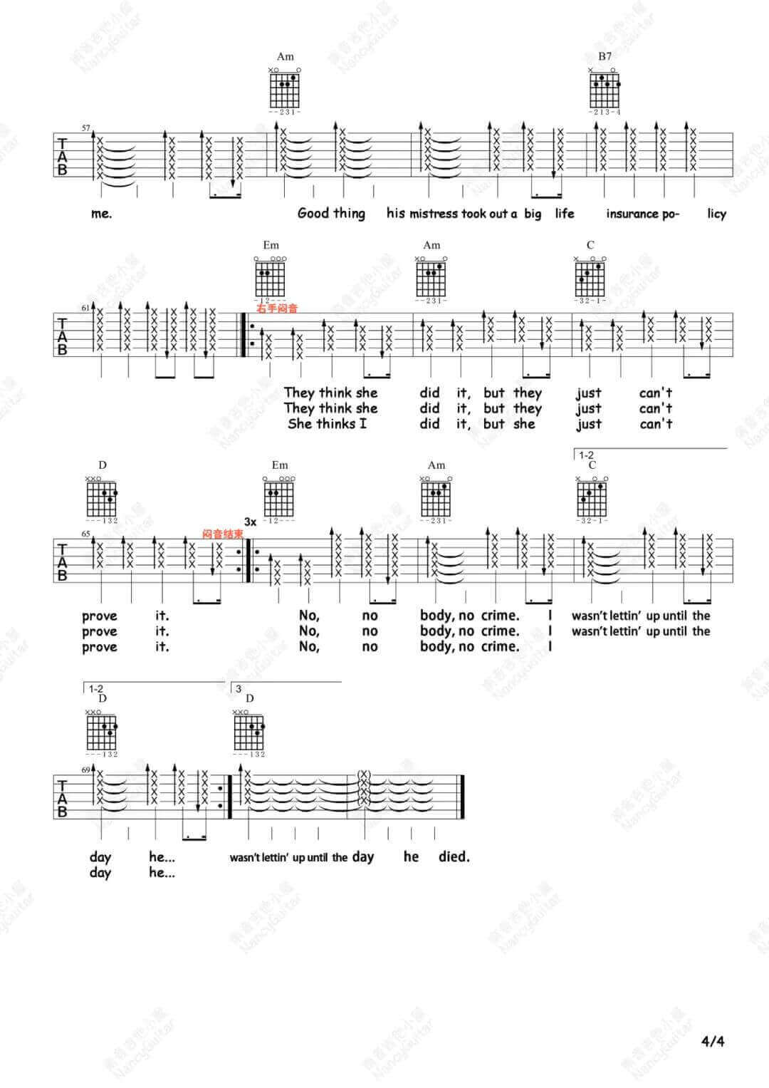 当前位置:琴谱网>吉他弹唱>No Body No Crime