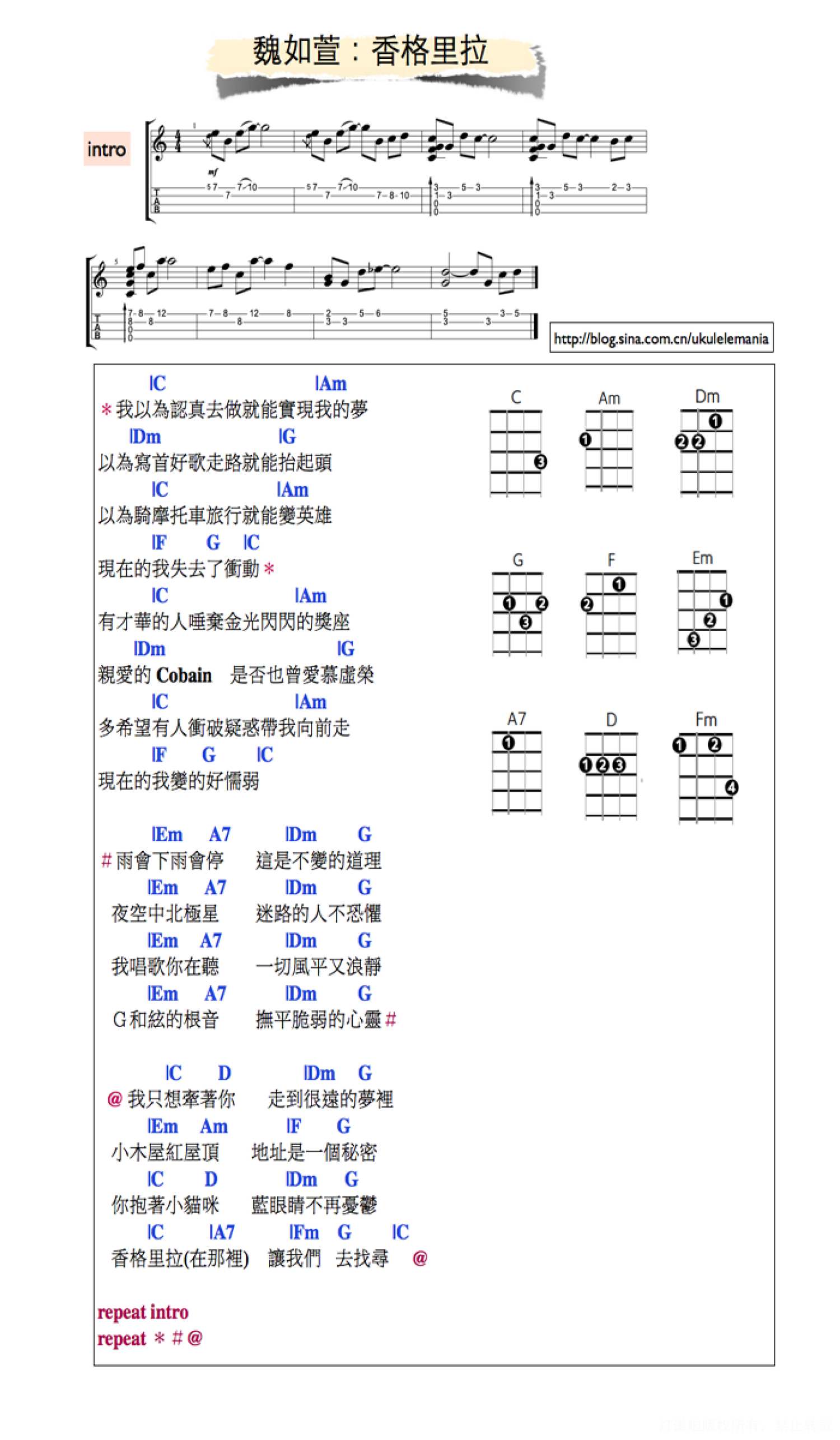 香格里拉尤克里里谱 - 魏如萱