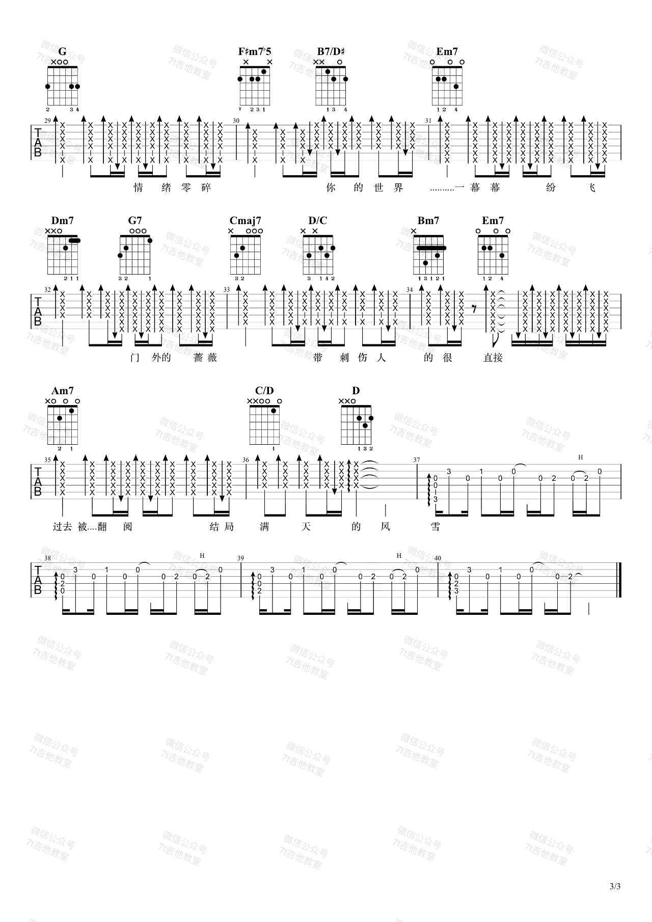 曲谱介绍: 《我落泪情绪零碎》吉他谱_周杰伦_G调原版弹唱谱_高清六线谱分享,《我落泪情绪零碎》是由周杰伦作曲并演唱的一首歌曲,这首歌我本人感觉十分好听,当初专辑出来的时候,这首歌我一直单曲循环,但是不知道为什么好像大众对这首歌没太大感觉,导致有些冷门。前奏用电子编曲,曲风富有张力,钢琴的配合也让曲子的感觉更加像一曲交响乐,当曲子的前奏与钢琴交织的一瞬间就注定了要将伤感进行到底,一如既往的“周氏哭腔”在副歌部分发挥的淋漓尽致。