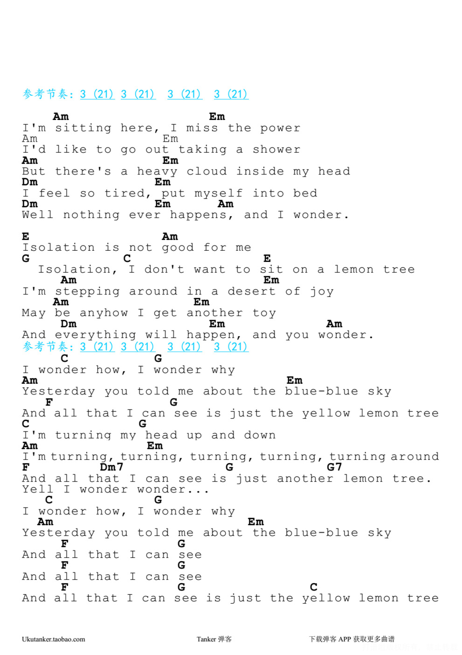 曲谱介绍: 《lemon tree》_尤克里里谱