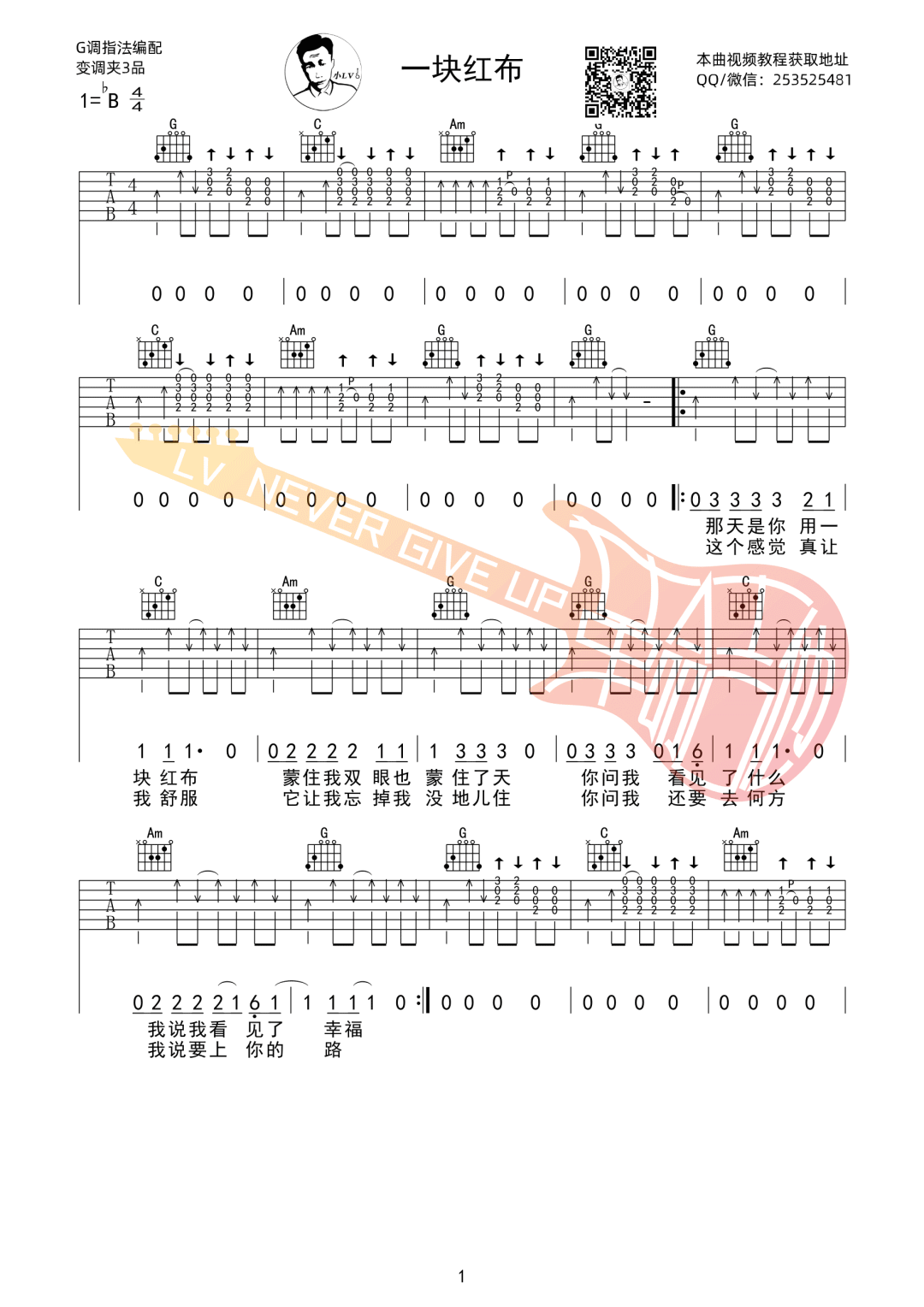 曲谱介绍: 《一块红布》吉他谱_崔健_G调弹唱六线谱_高清图片谱分享,《一块红布》是由摇滚教父崔健演唱的一首经典歌曲,崔健被认为是具有诗人、思想者气质的音乐人。但与其说他是音乐人,不如说他是战士。他用音乐作武器,向生活中的虚伪、丑恶和不公正开火,表达中国和世界青年的心声。这里分享来自@革命吉他出品的《一块红布》吉他谱,歌曲原调为降B调,这里采用G调指法进行编配,演唱时夹变调夹3品可回到原调。