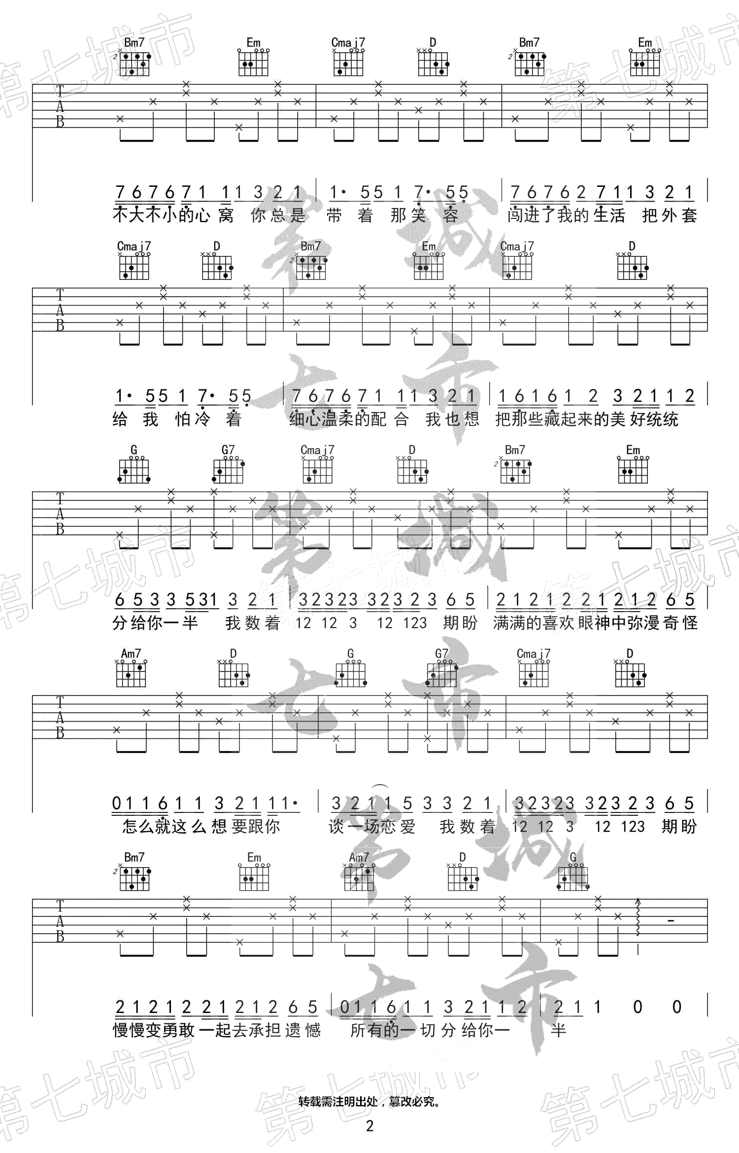 当前位置:琴谱网>吉他弹唱>分你一半