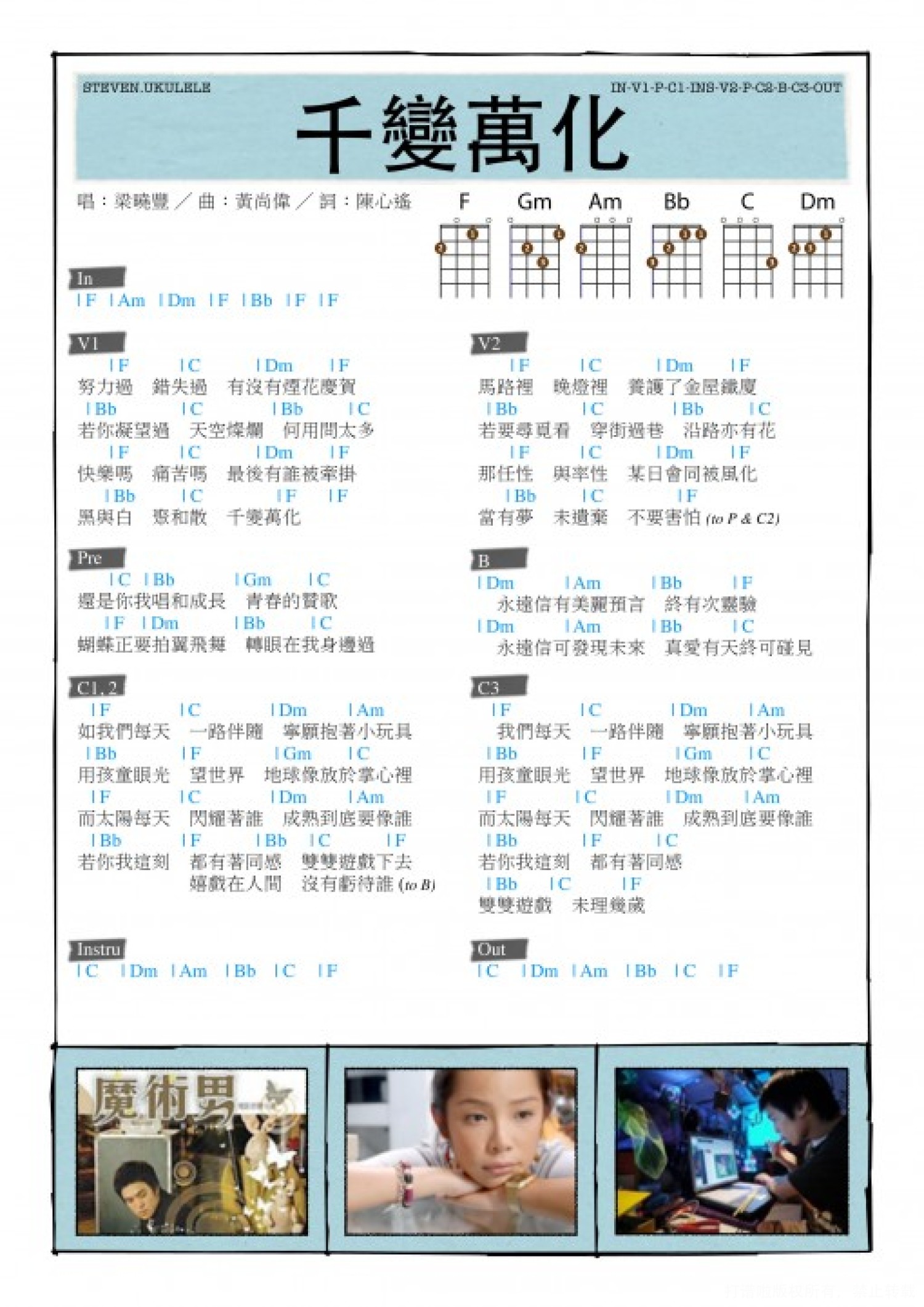 曲谱介绍: 梁晓丰《千变万化》_F调尤克里里谱