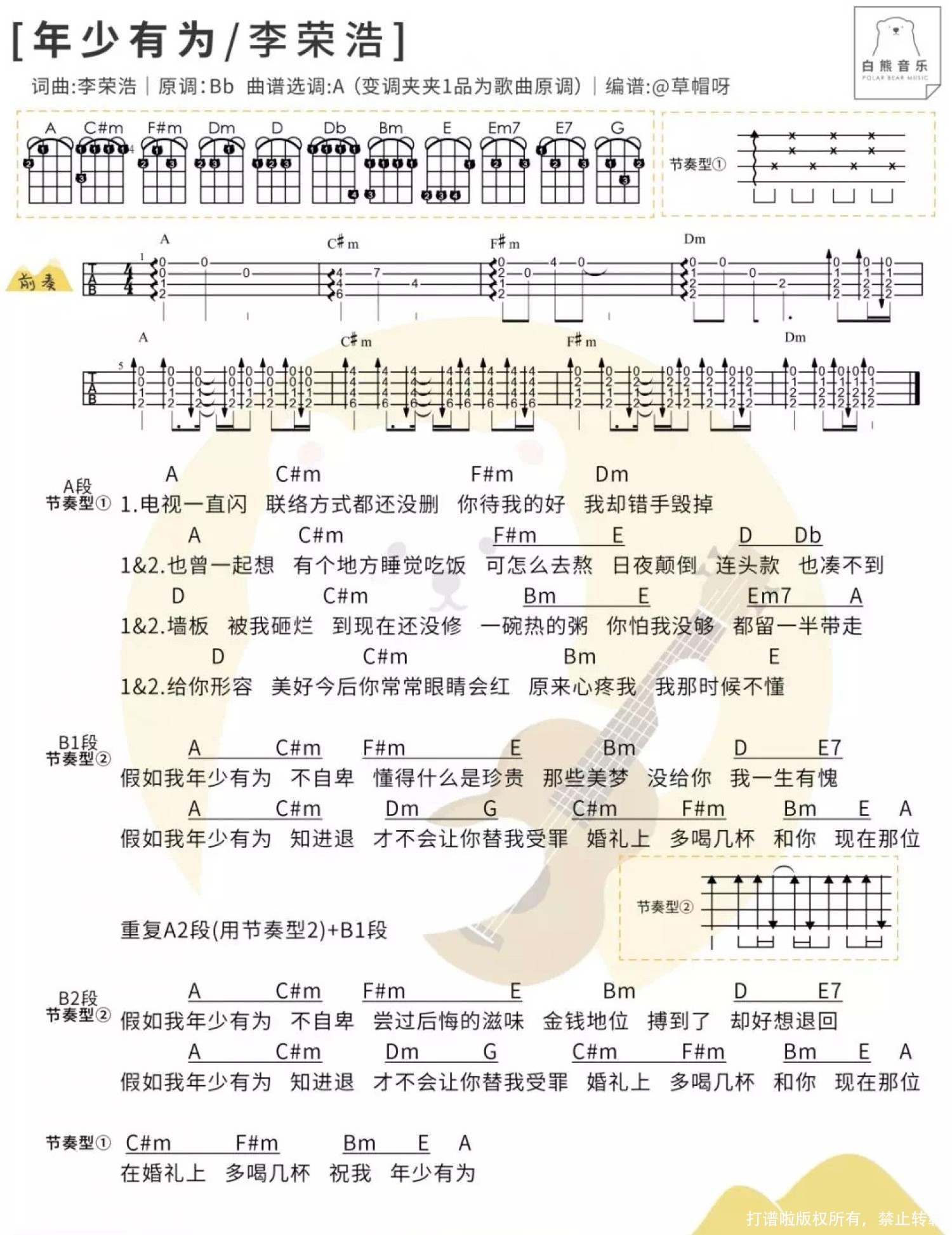 年少无知尤克里里谱 - 李荣浩