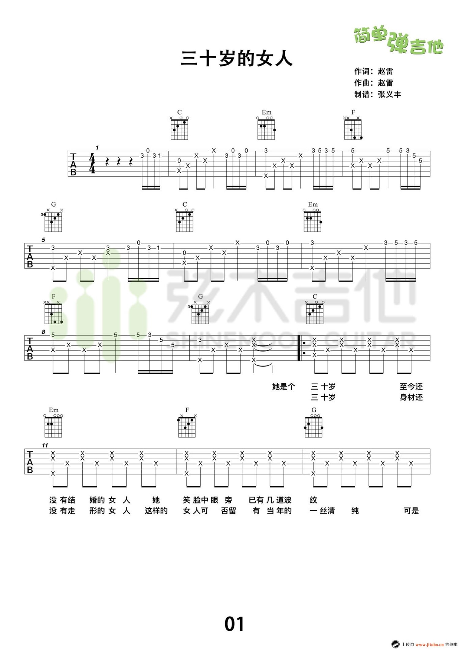 曲谱介绍: 三十岁的女人吉他谱,赵雷演唱,30岁的女人吉他弹唱谱