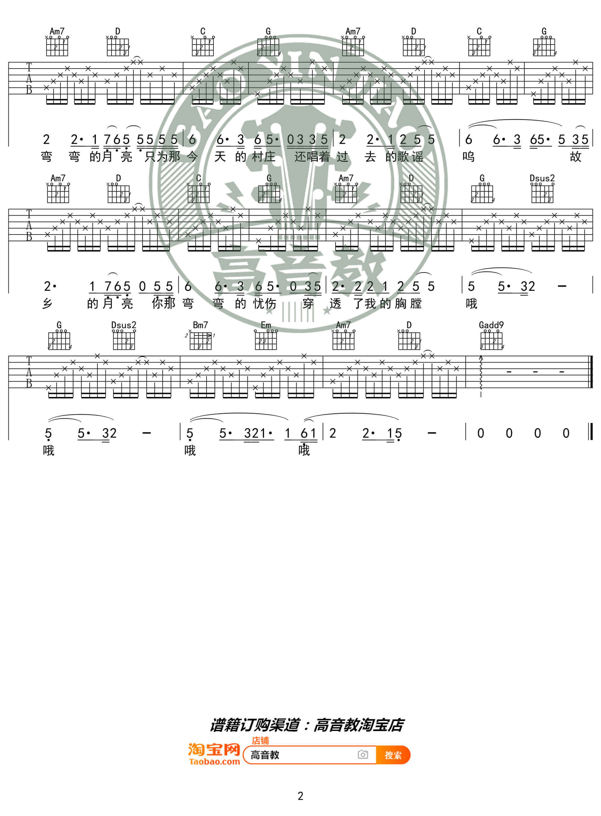 当前位置:琴谱网>吉他弹唱>弯弯的月亮