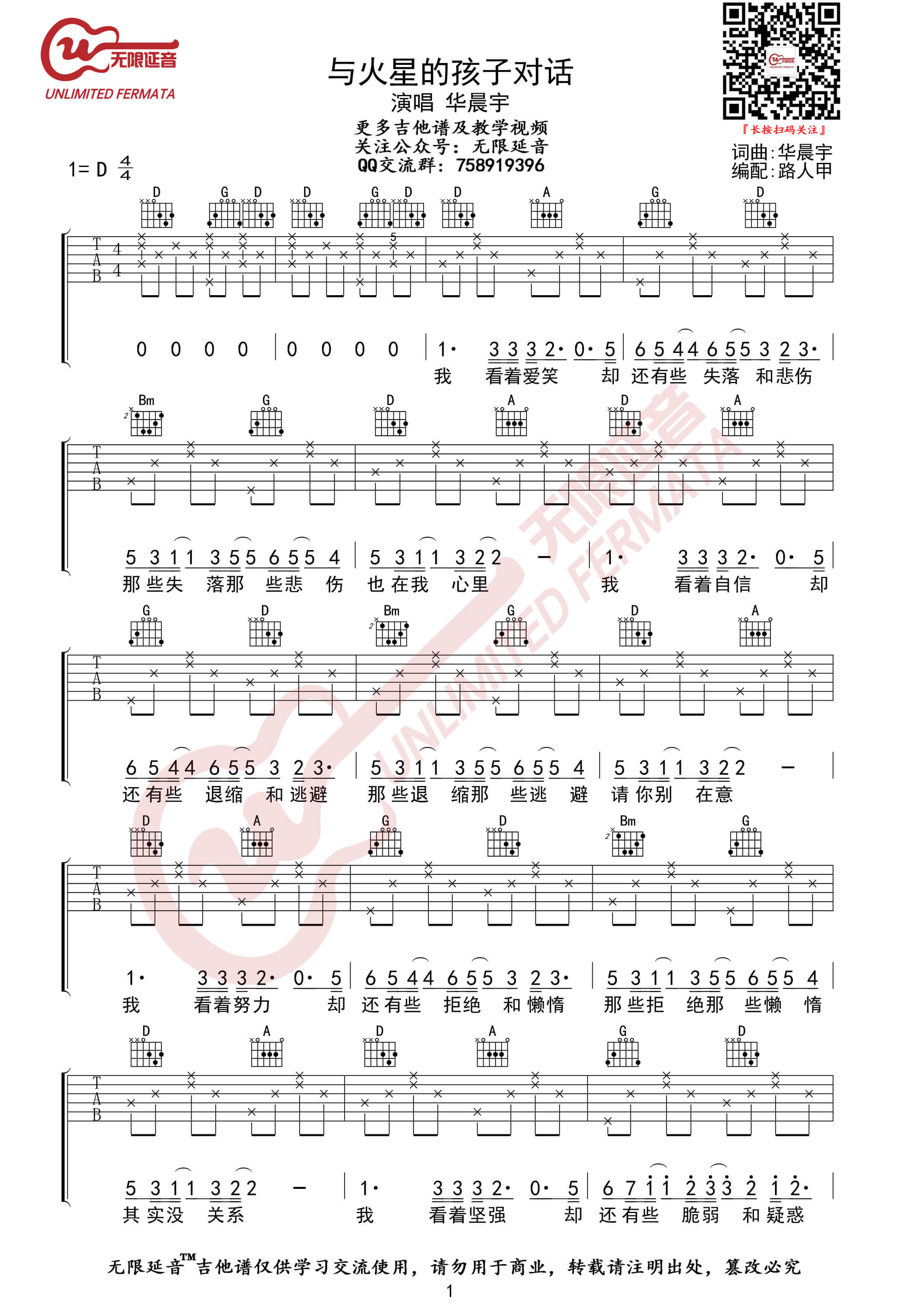 与火星的孩子对话吉他谱 - 华晨宇 - D调吉他弹唱谱