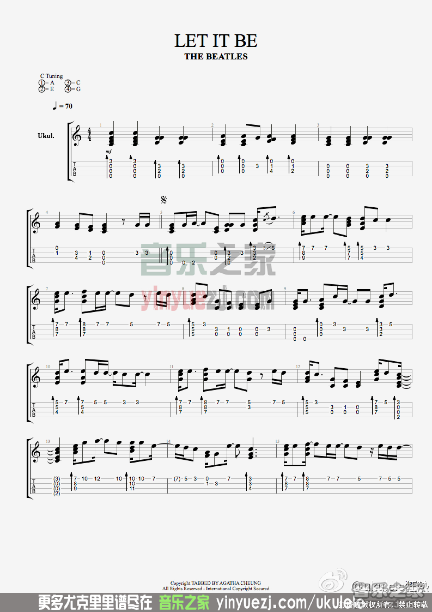 曲谱介绍: 《let it be》_C调尤克里里谱