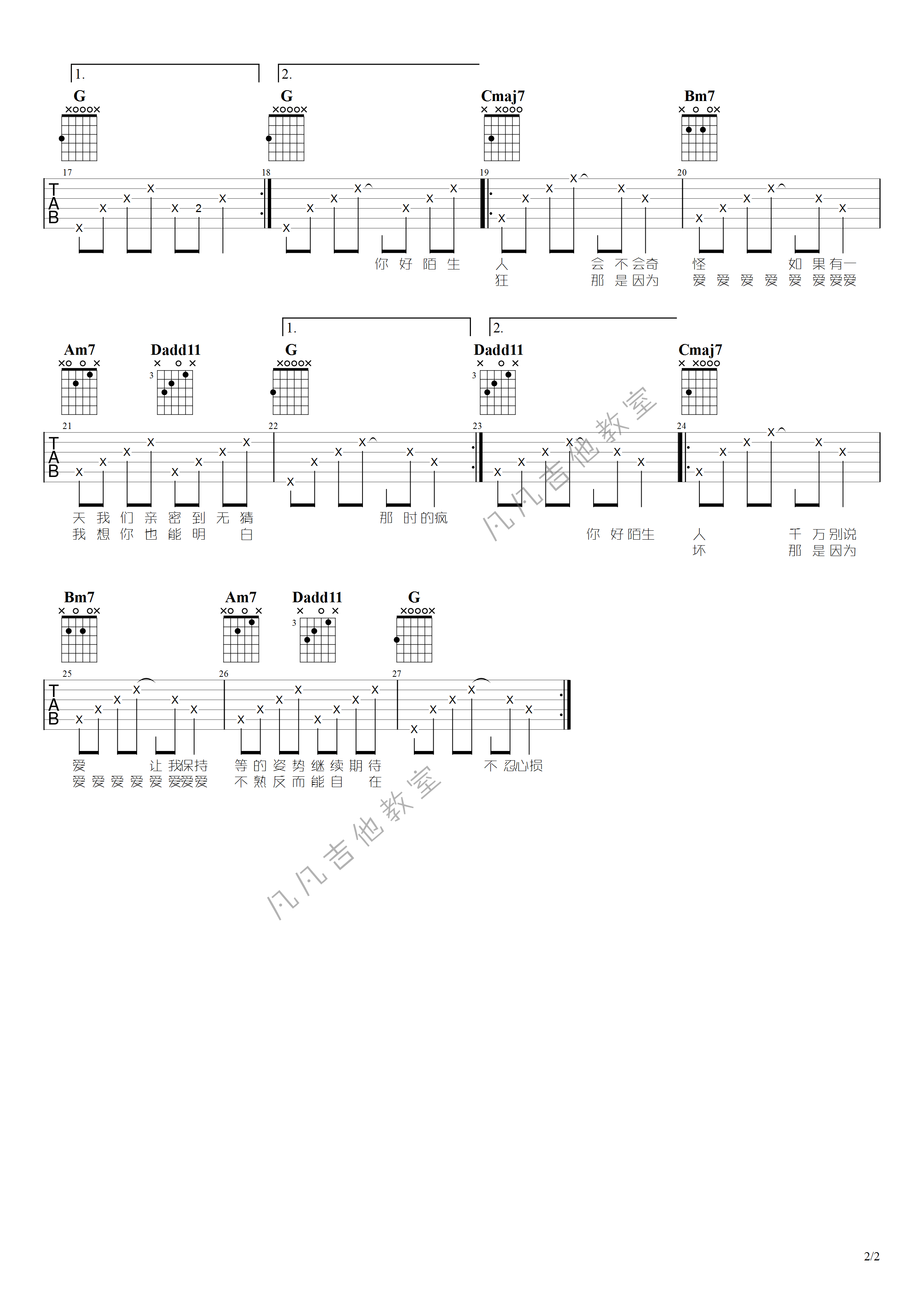 吉他弹唱G调来源:凡凡吉他教室210 浏览2024-02-08 12:12发布图谱共2页