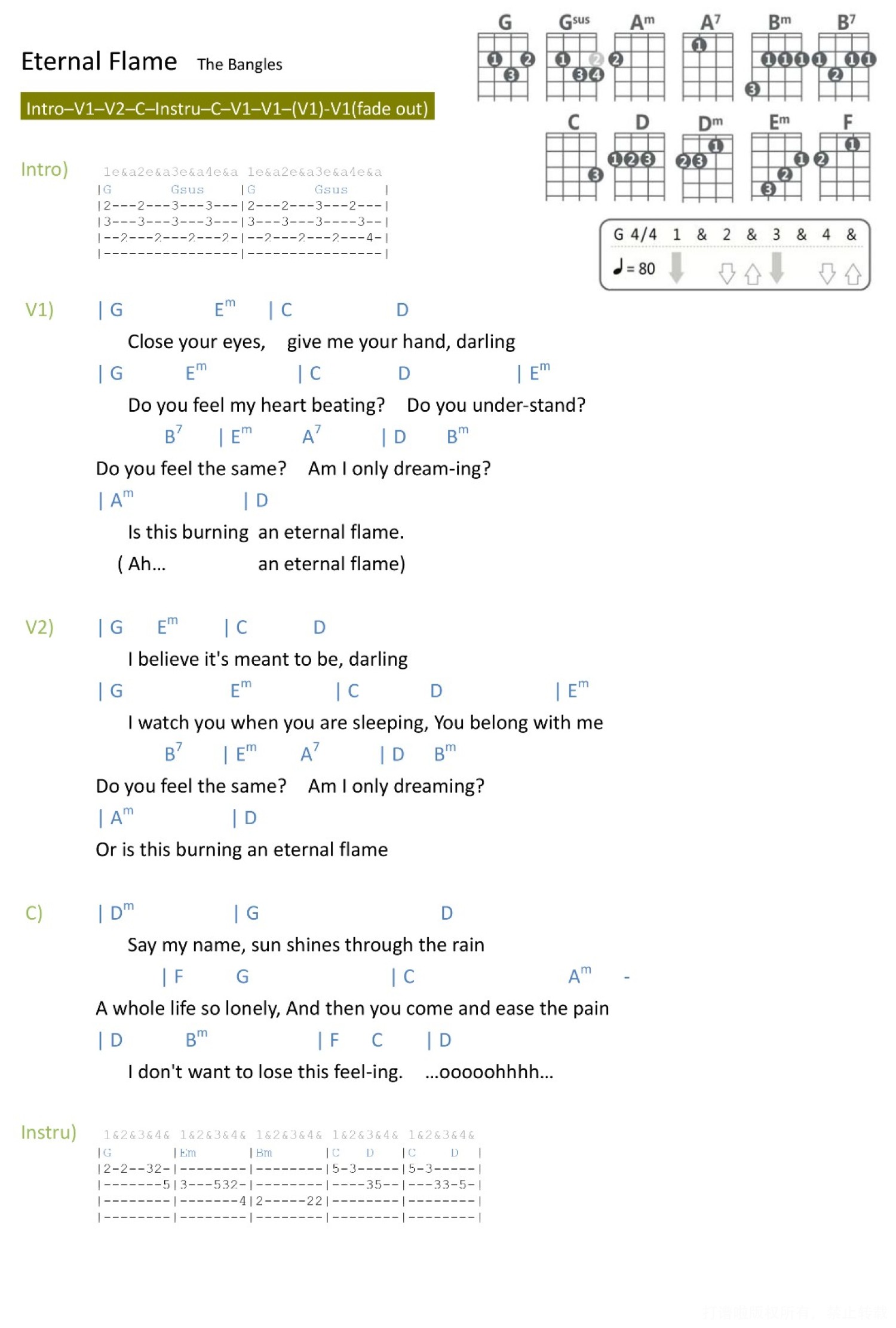 曲谱介绍: 《Eternal Flame》_G调尤克里里谱