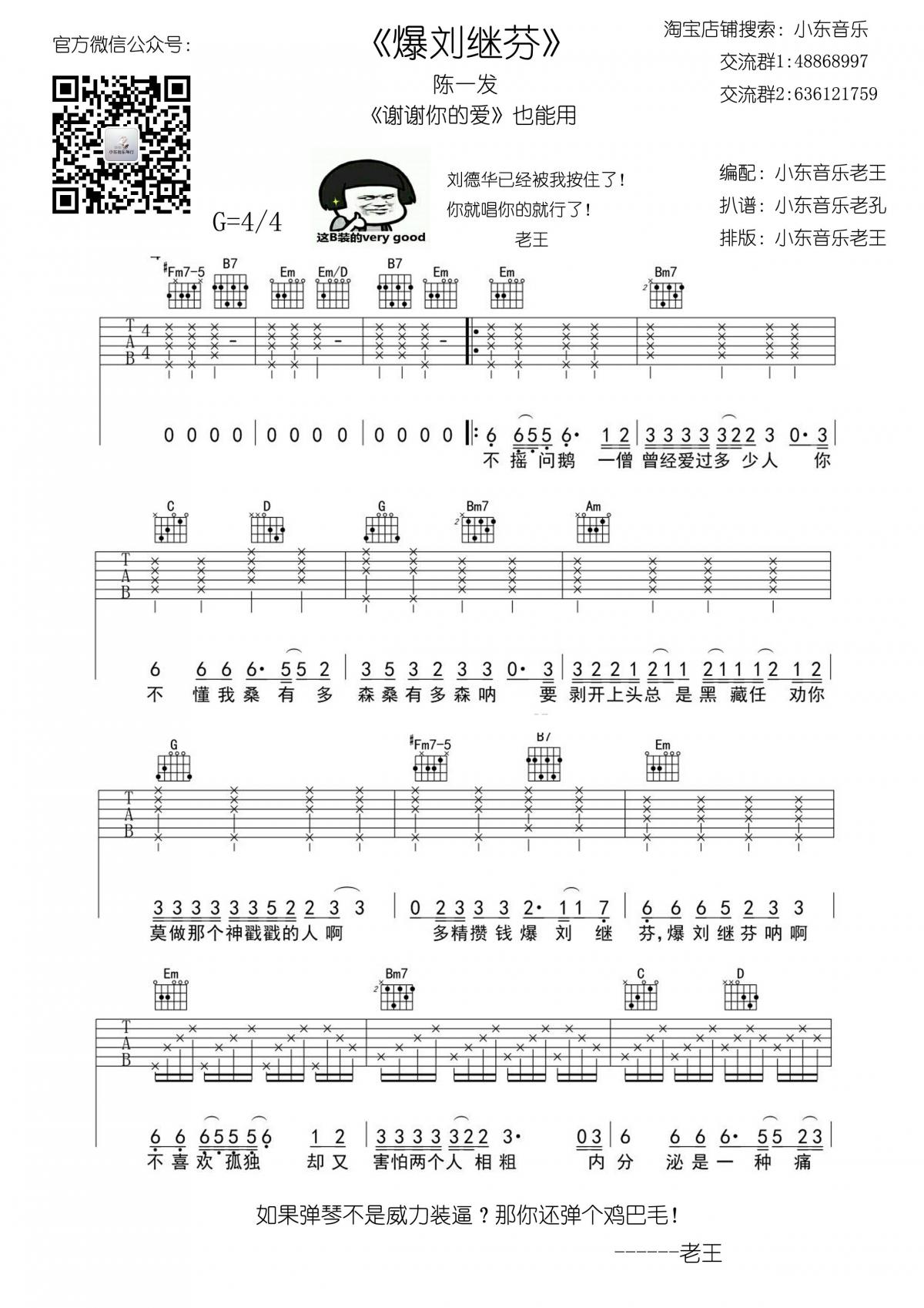 爆刘继芬_G调吉他谱 - 爆刘继芬 - G调吉他弹唱谱