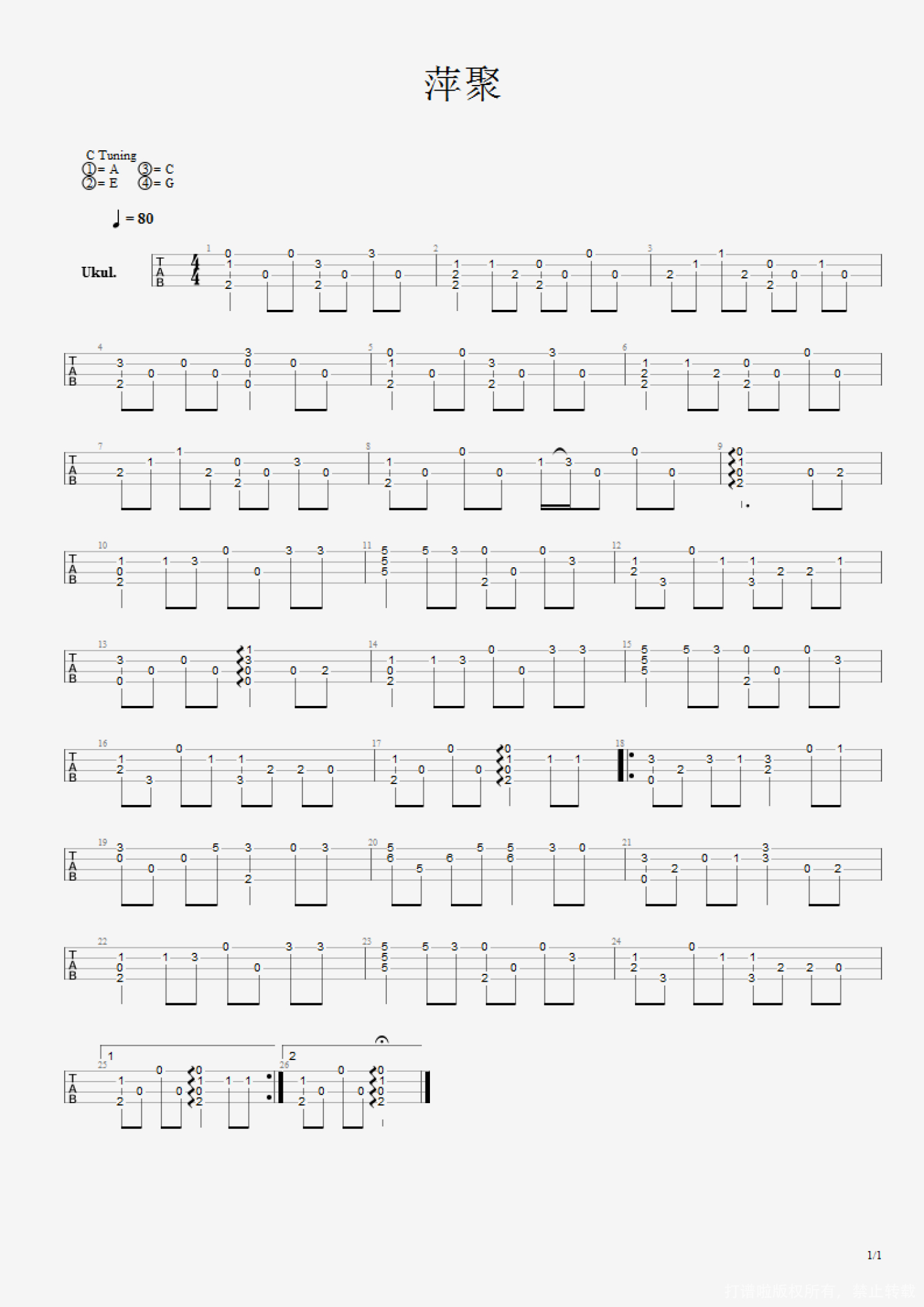 当前位置:琴谱网>尤克里里>萍聚