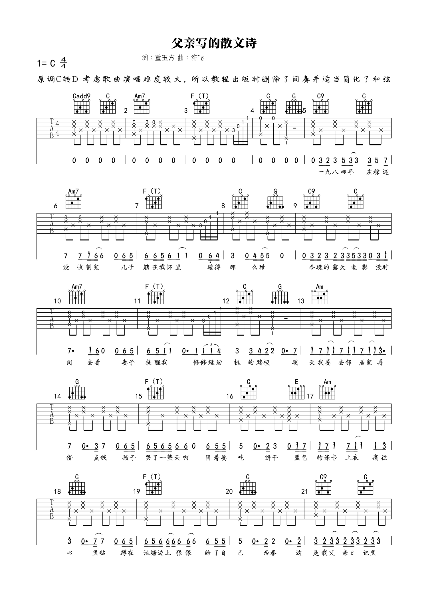 • 父亲写的散文诗吉他谱 - 李健 - C调吉他弹唱谱第1张