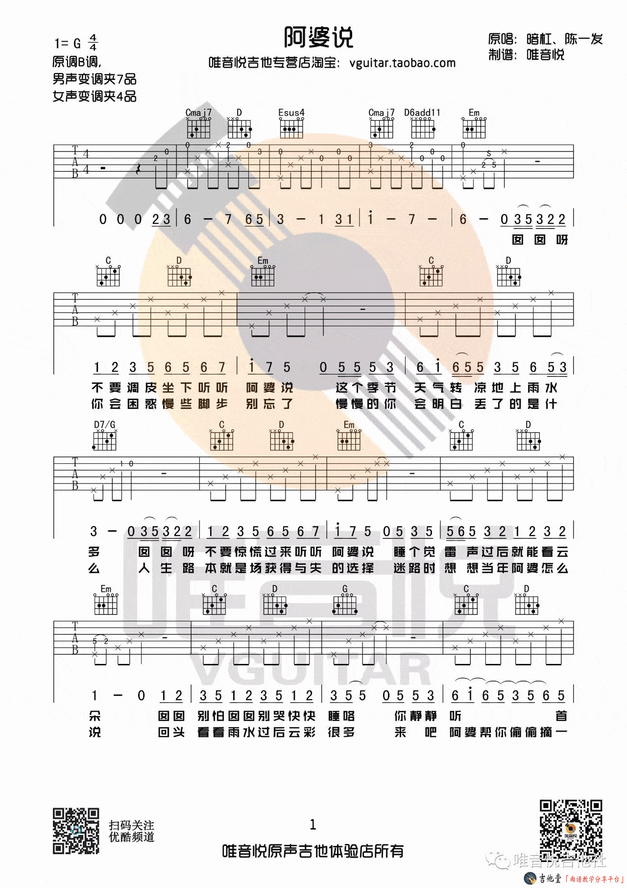当前位置:琴谱网>吉他弹唱>阿婆说