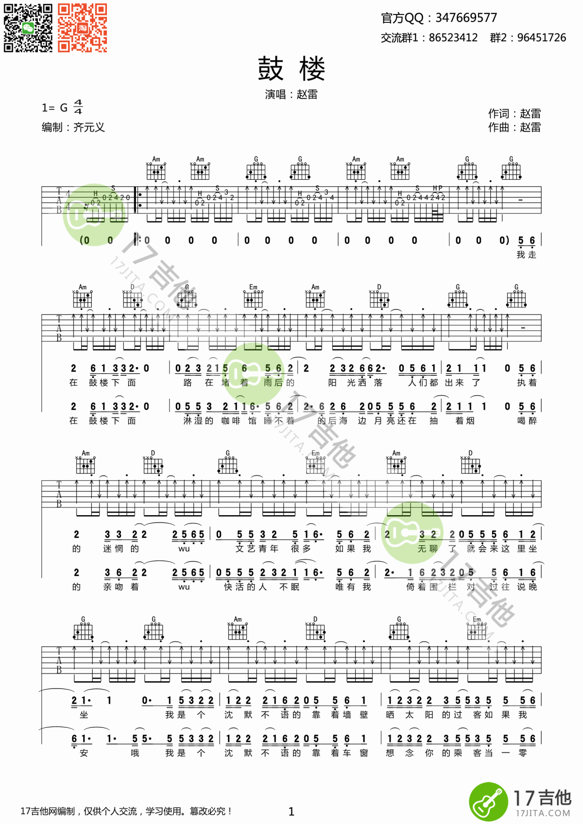当前位置:琴谱网>吉他弹唱>鼓楼