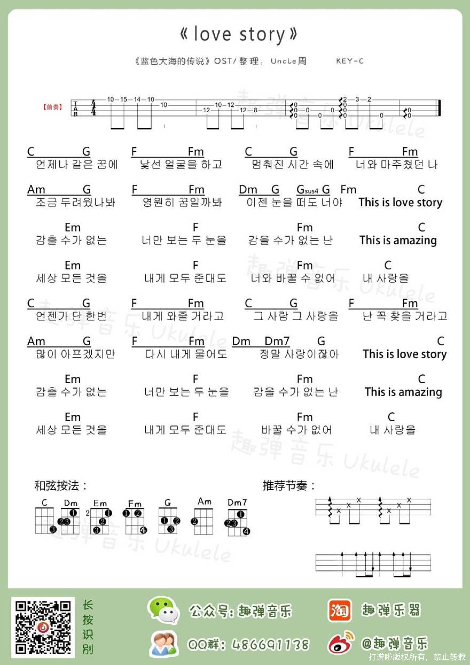 曲谱介绍: 《Love Story》_C调尤克里里谱