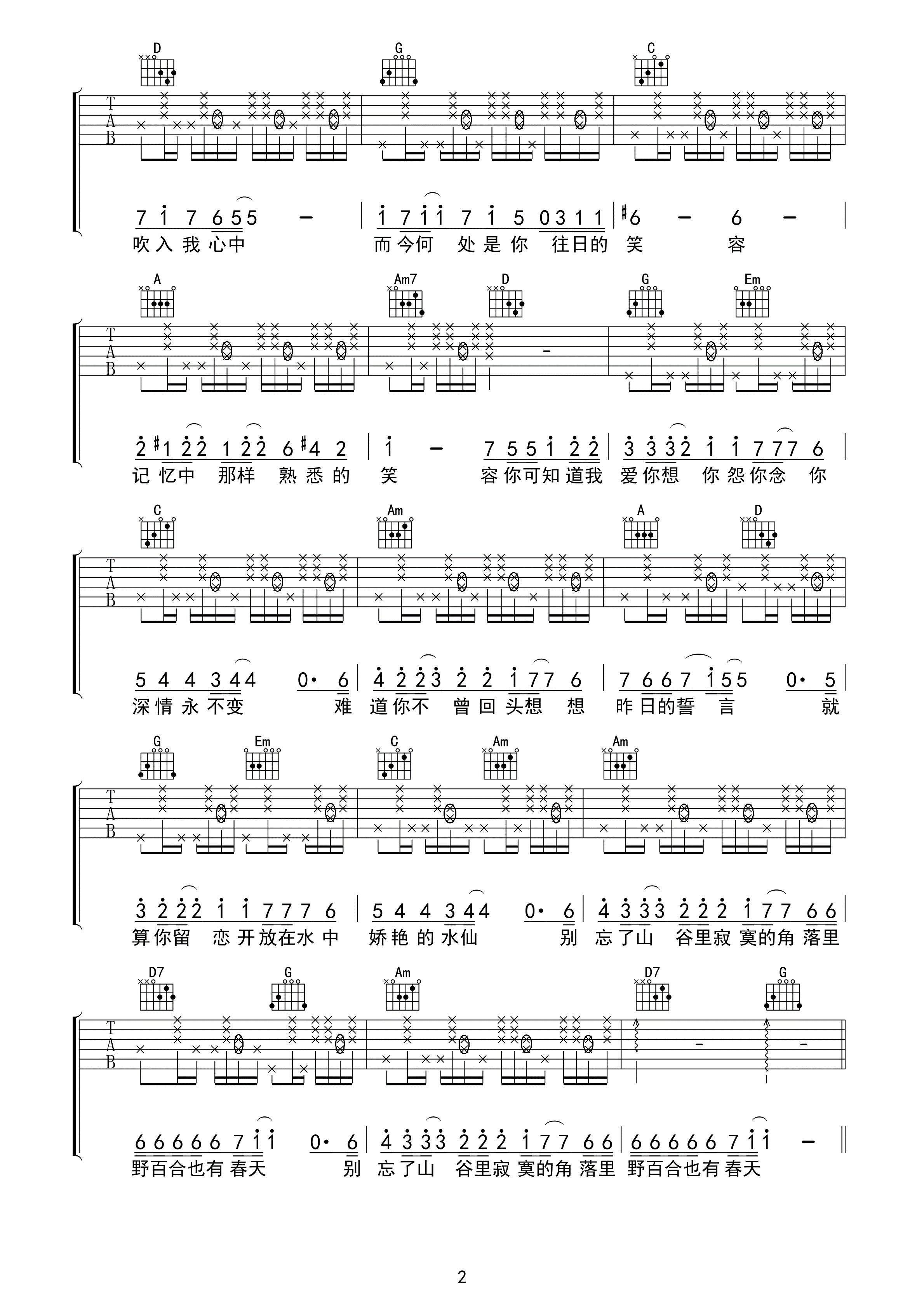 当前位置:琴谱网>吉他弹唱>野百合也有春天