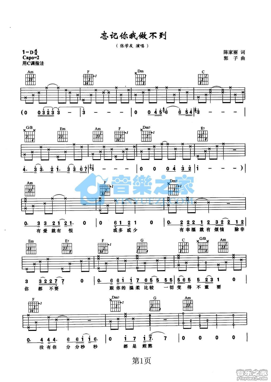 当前位置:琴谱网>吉他弹唱>忘记你我做不到