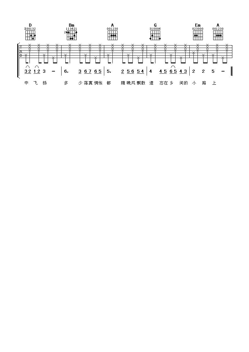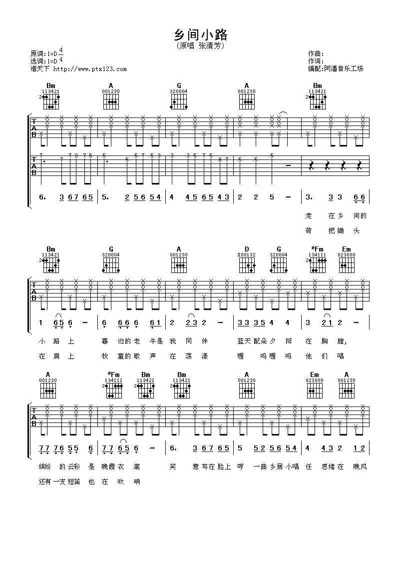 乡间小路吉他谱 - 张清芳 - D调吉他弹唱谱