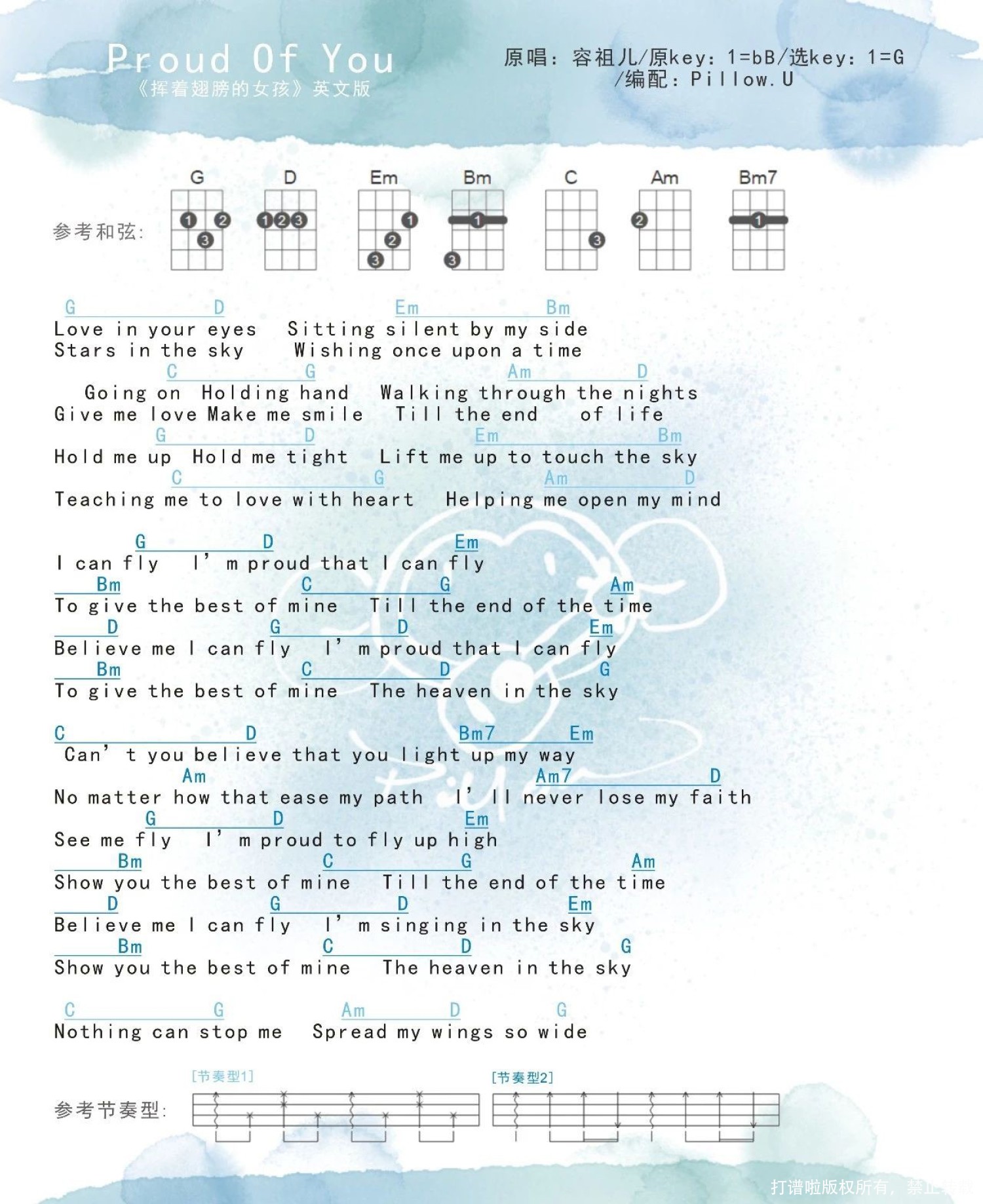 曲谱介绍: 容祖儿《proud of you》_G调尤克里里谱