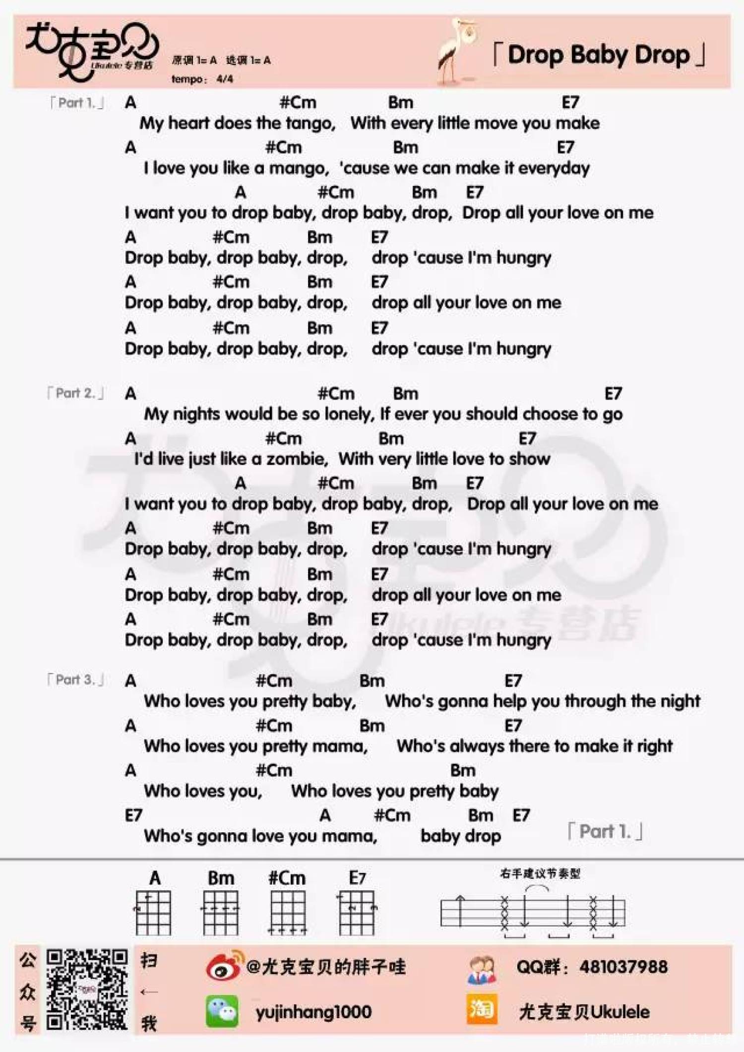曲谱介绍: 《Drop Baby Drop》_A调尤克里里谱