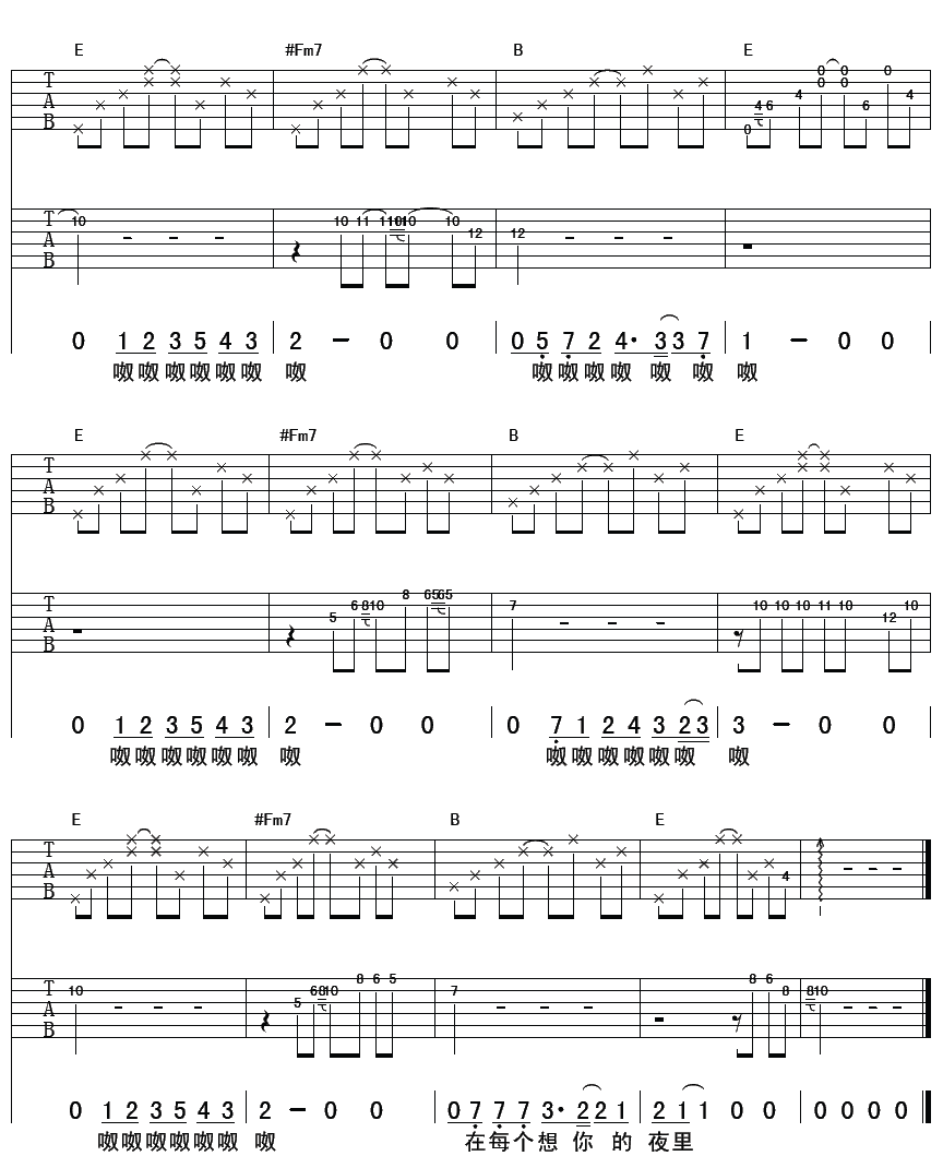 当前位置:琴谱网>吉他弹唱>在每个想你的夜晚