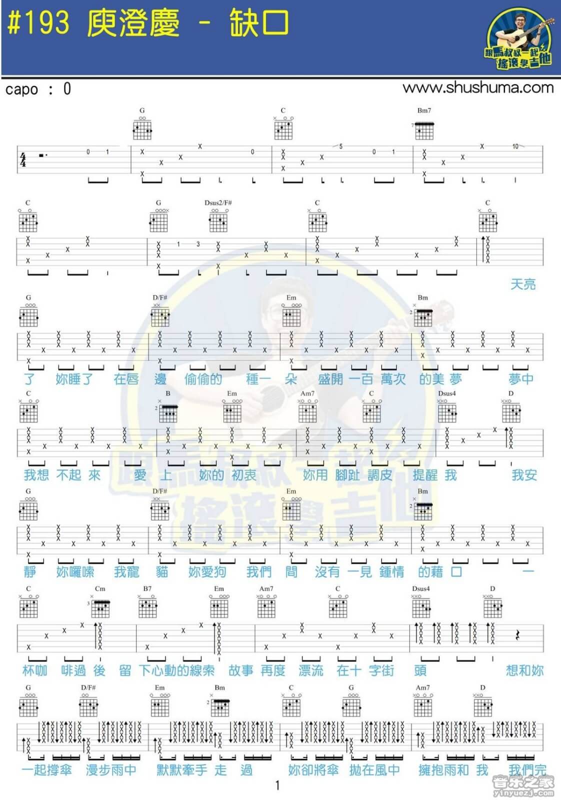 缺口吉他谱 - 庾澄庆 - G调吉他弹唱谱
