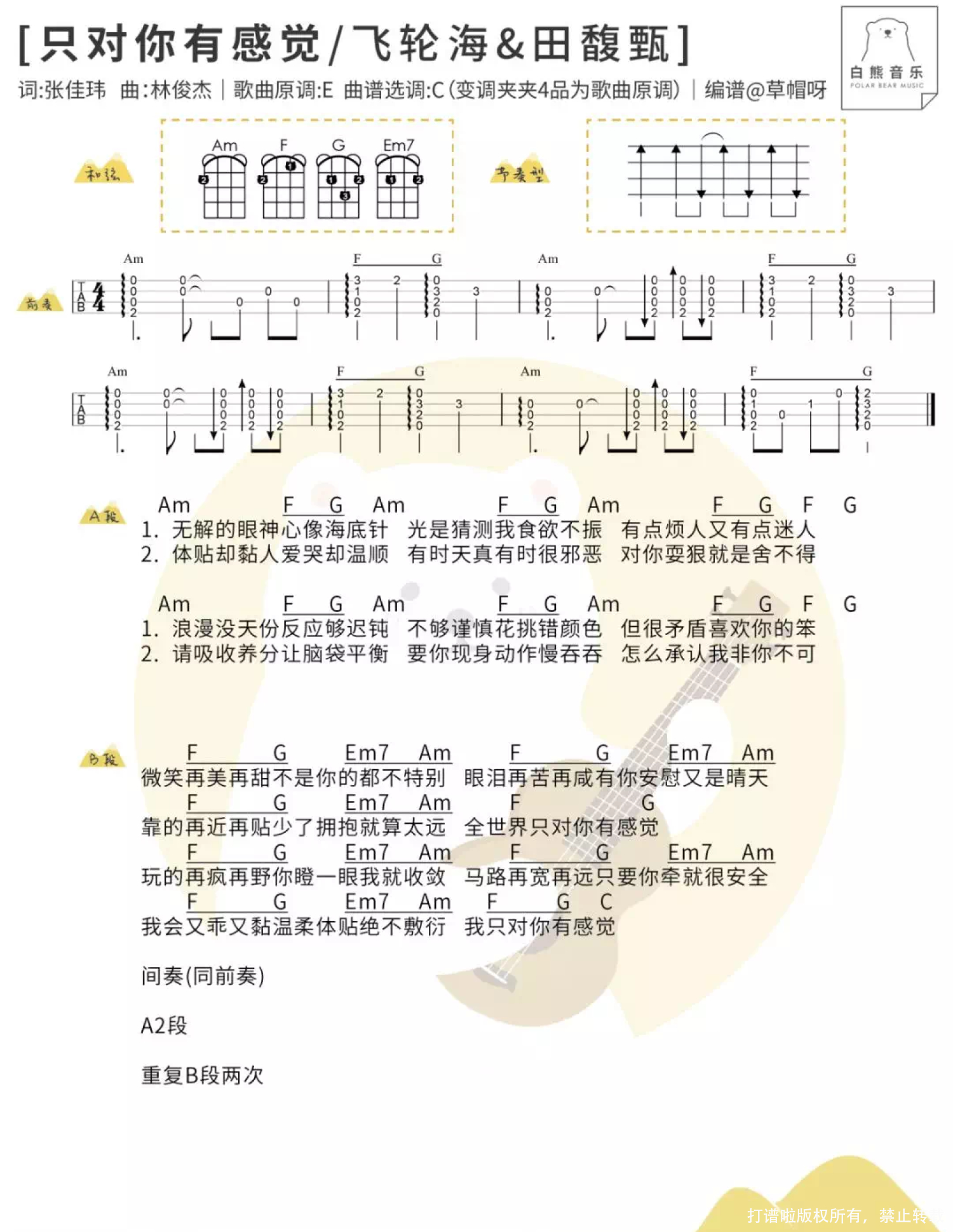 曲谱介绍: 只对你有感觉ukulele谱
