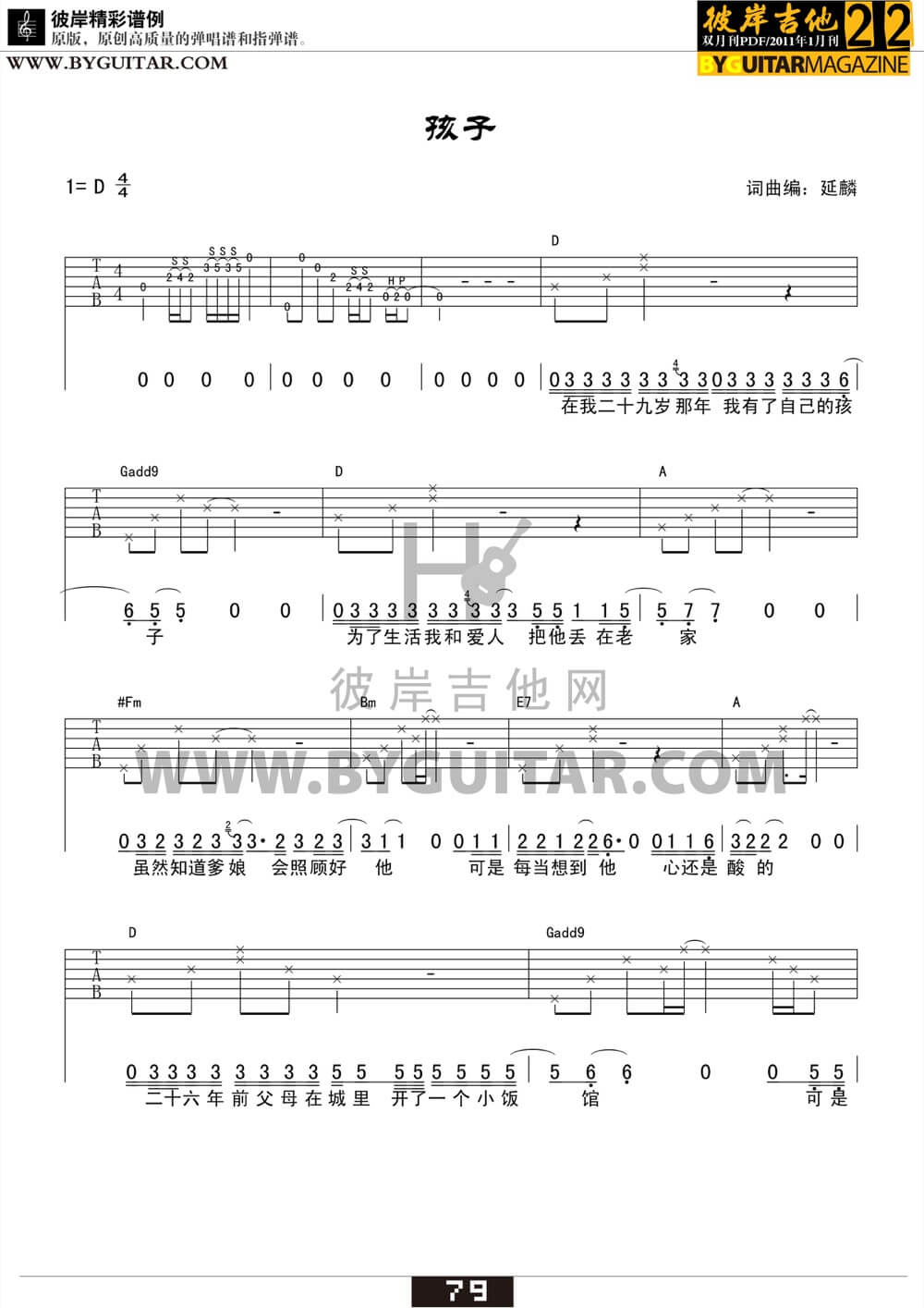孩子吉他谱 - 延麟 - D调吉他弹唱谱