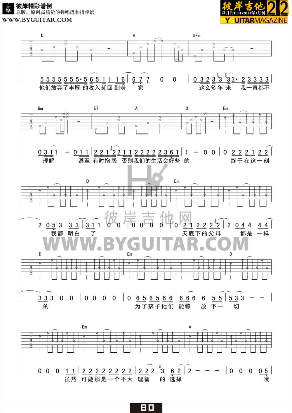 曲谱介绍: 孩子吉他谱采用了D调指法,由彼岸吉他网编配完成。重要提示:祝你一路顺风吉他谱更新啦,学完这首后,顺便把下首学了吧。