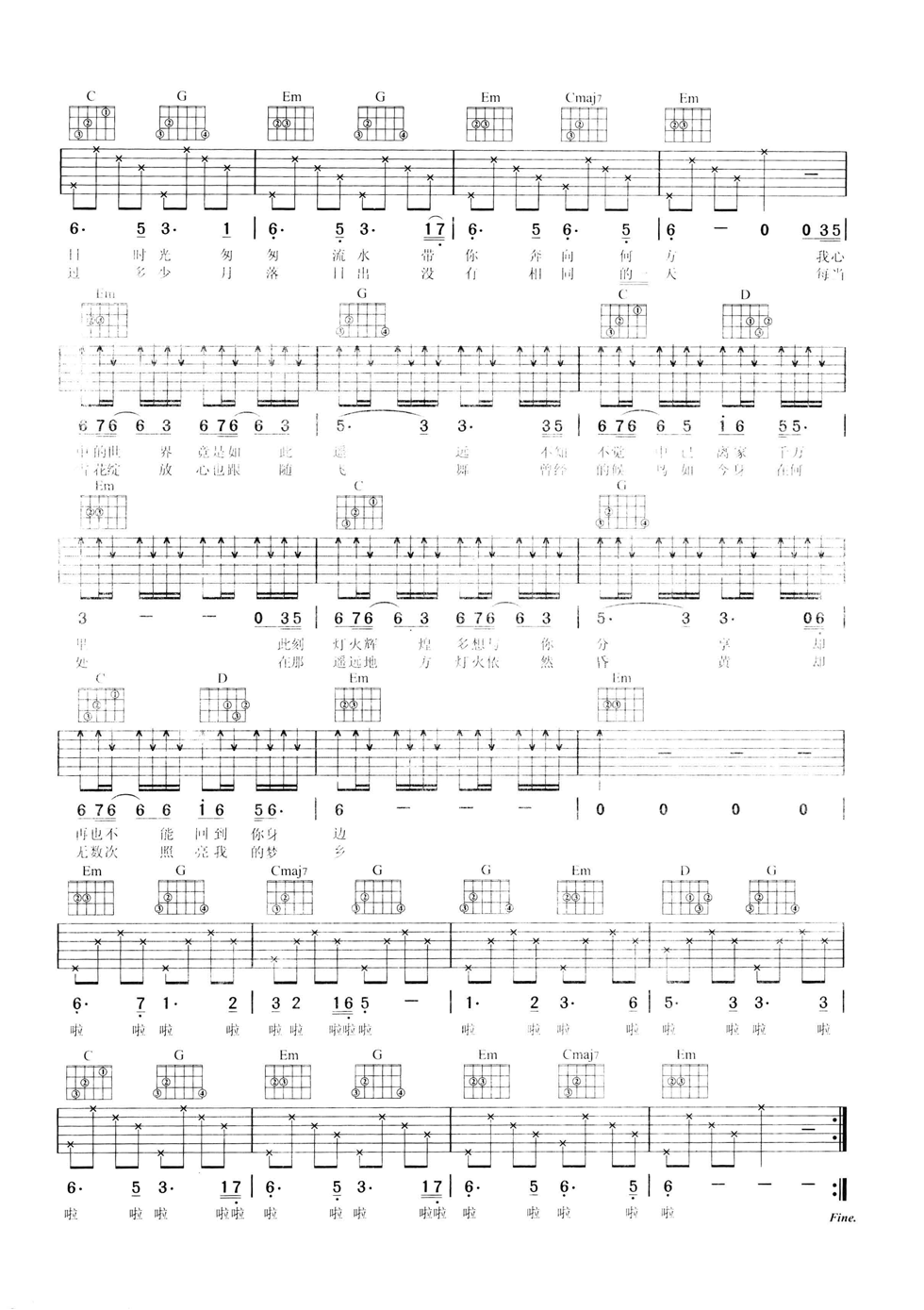 当前位置:琴谱网>吉他弹唱>故乡山川