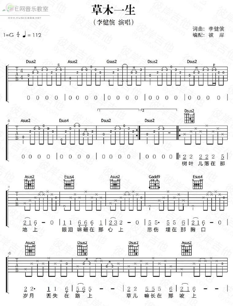 草木一生吉他谱 - 李健傧 - G调吉他弹唱谱