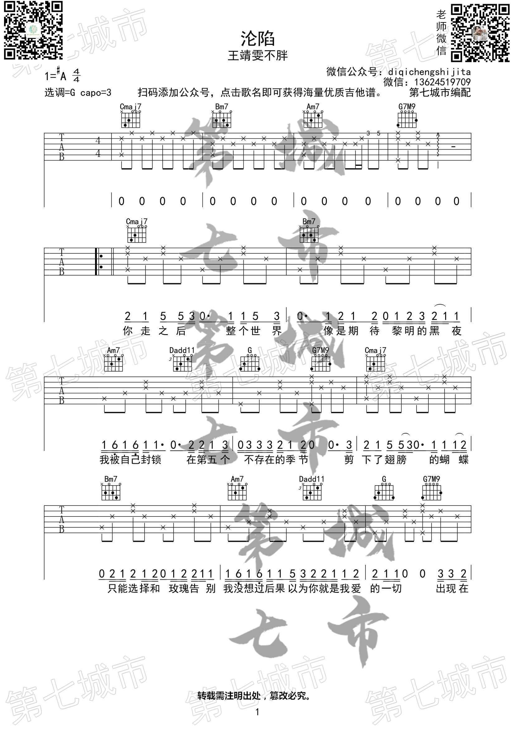 沦陷吉他谱 - 王靖雯不胖 - G调吉他弹唱谱