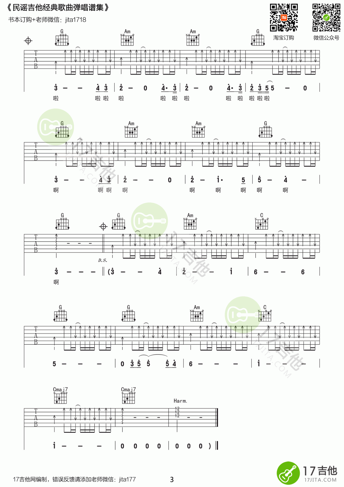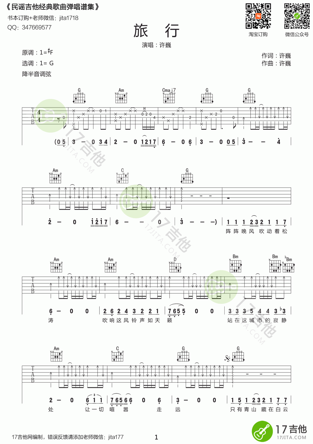 曲谱介绍: 许巍《旅行》吉他弹唱谱,采用G调指法编配,共有3张高清图谱。