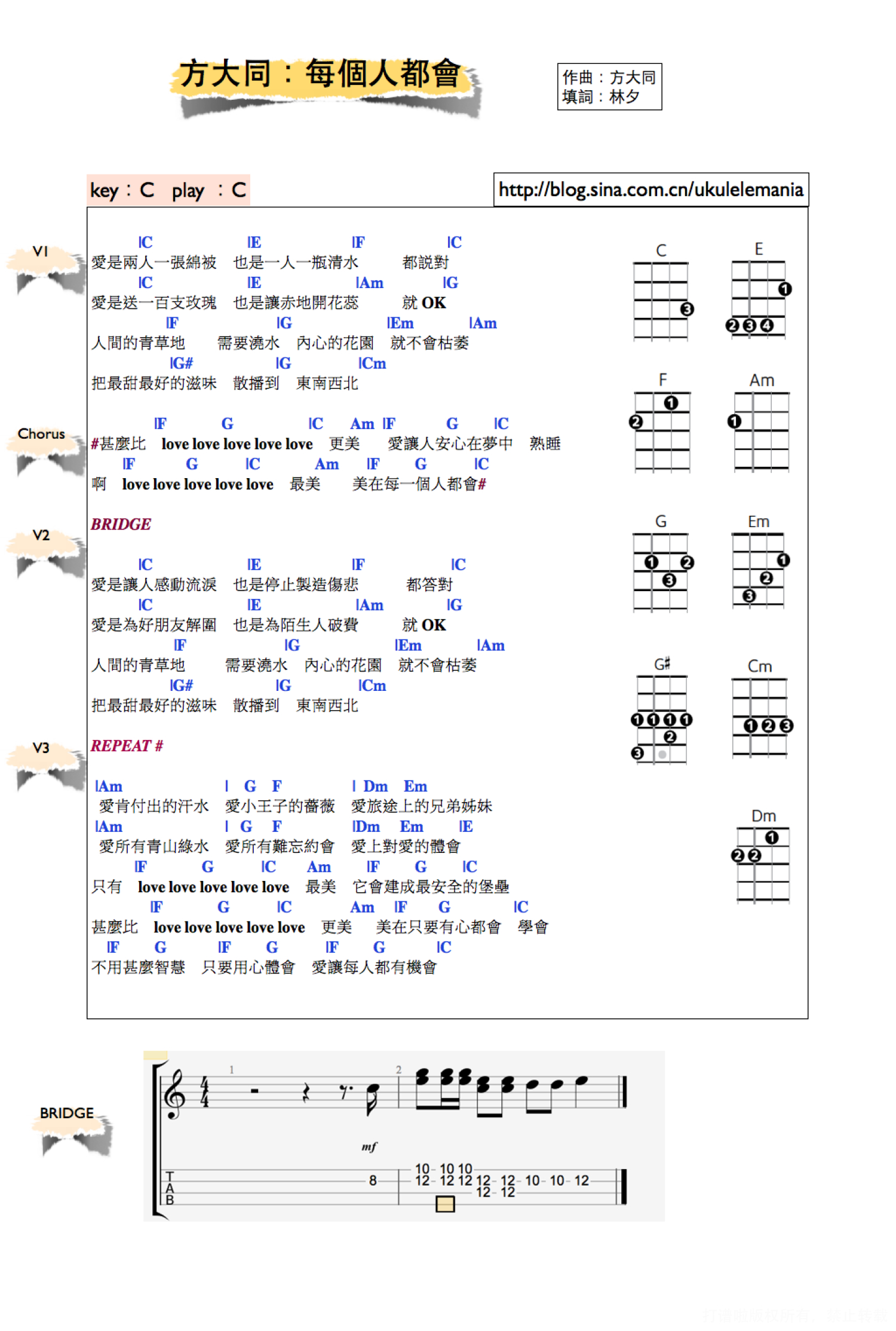 每个人都会尤克里里谱 - 方大同