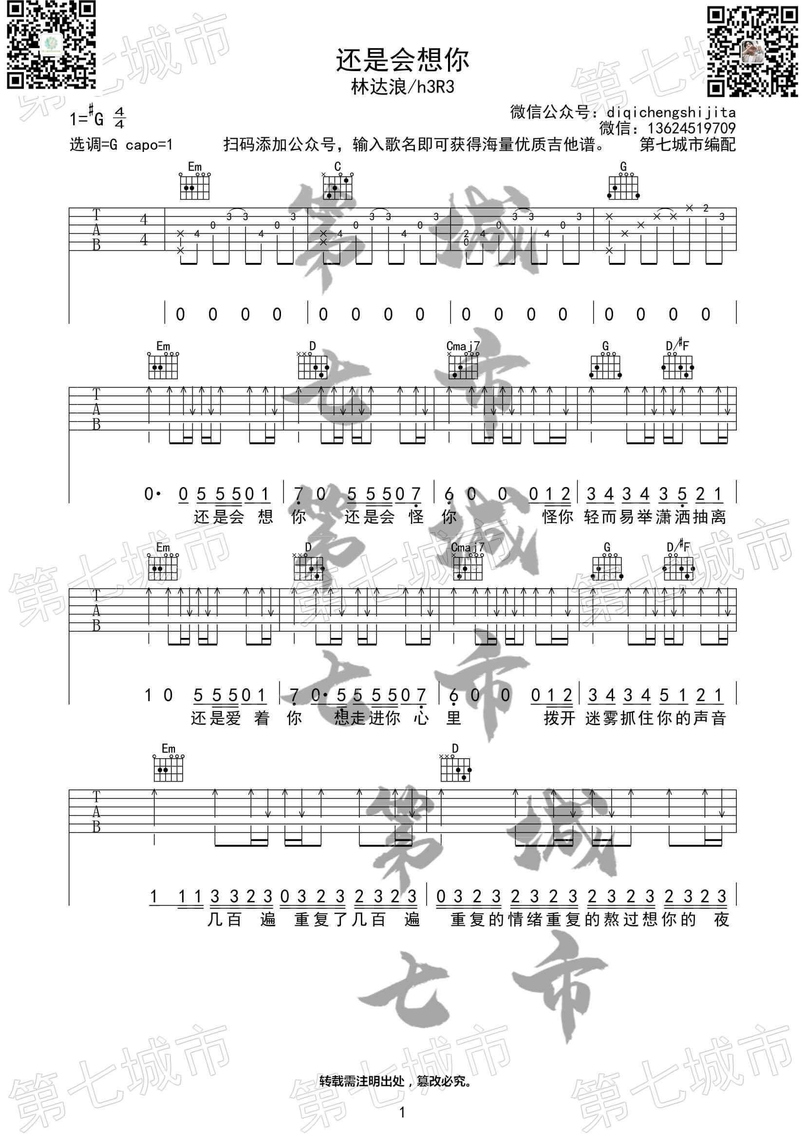 还是会想你吉他谱 - 林达浪 - G调吉他弹唱谱