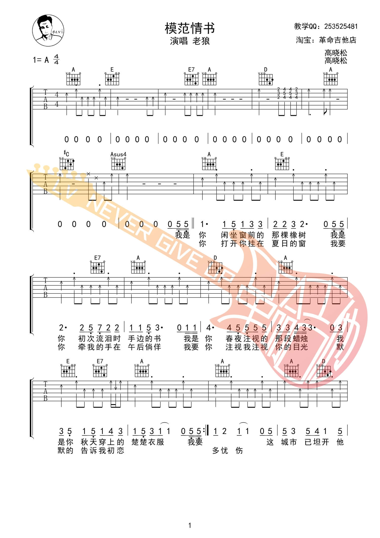 模范情书吉他谱 - 老狼 - A调吉他弹唱谱