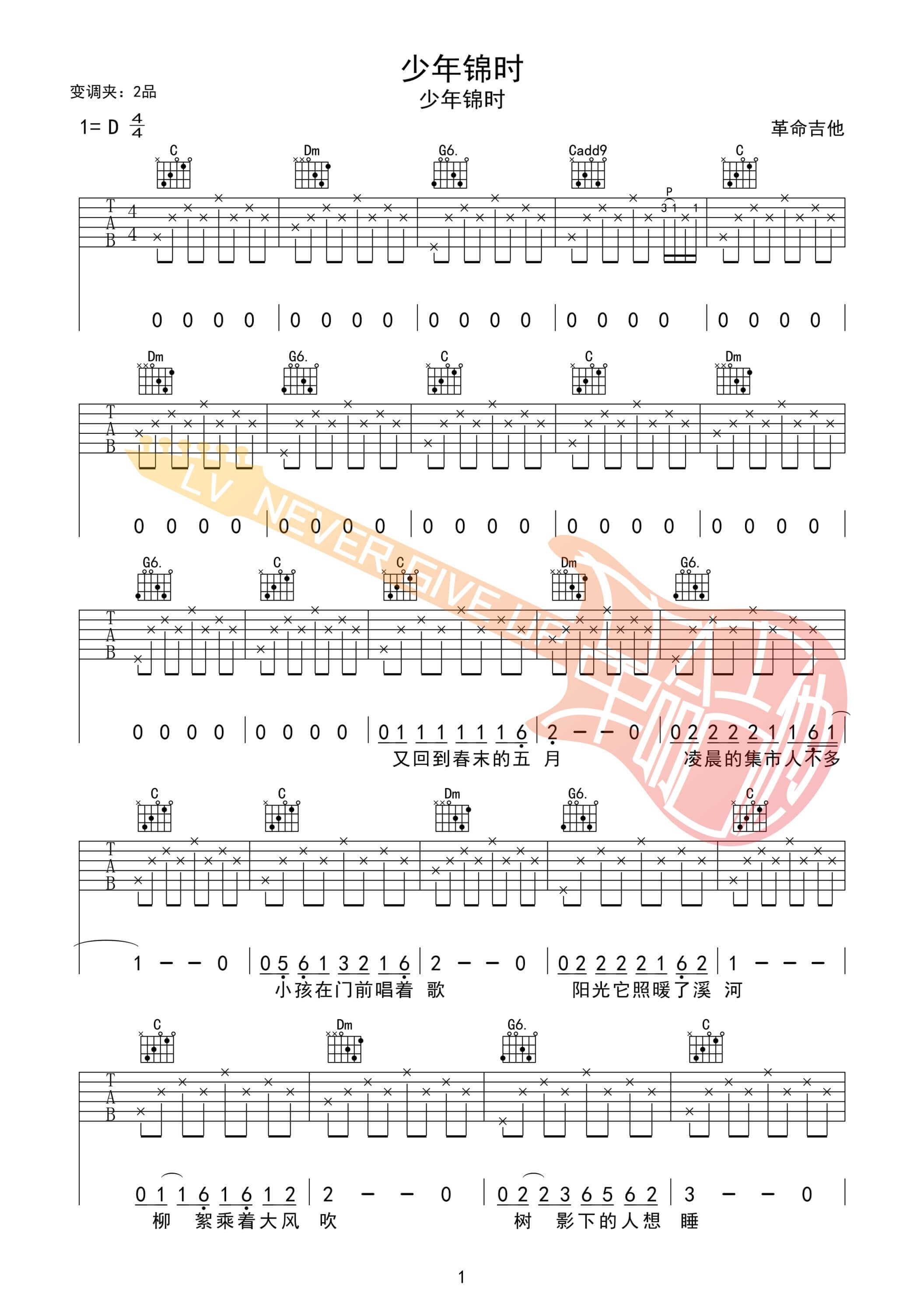 吉他弹唱D调来源:革命吉他381 浏览2024-02-08 15:50发布图谱共4页