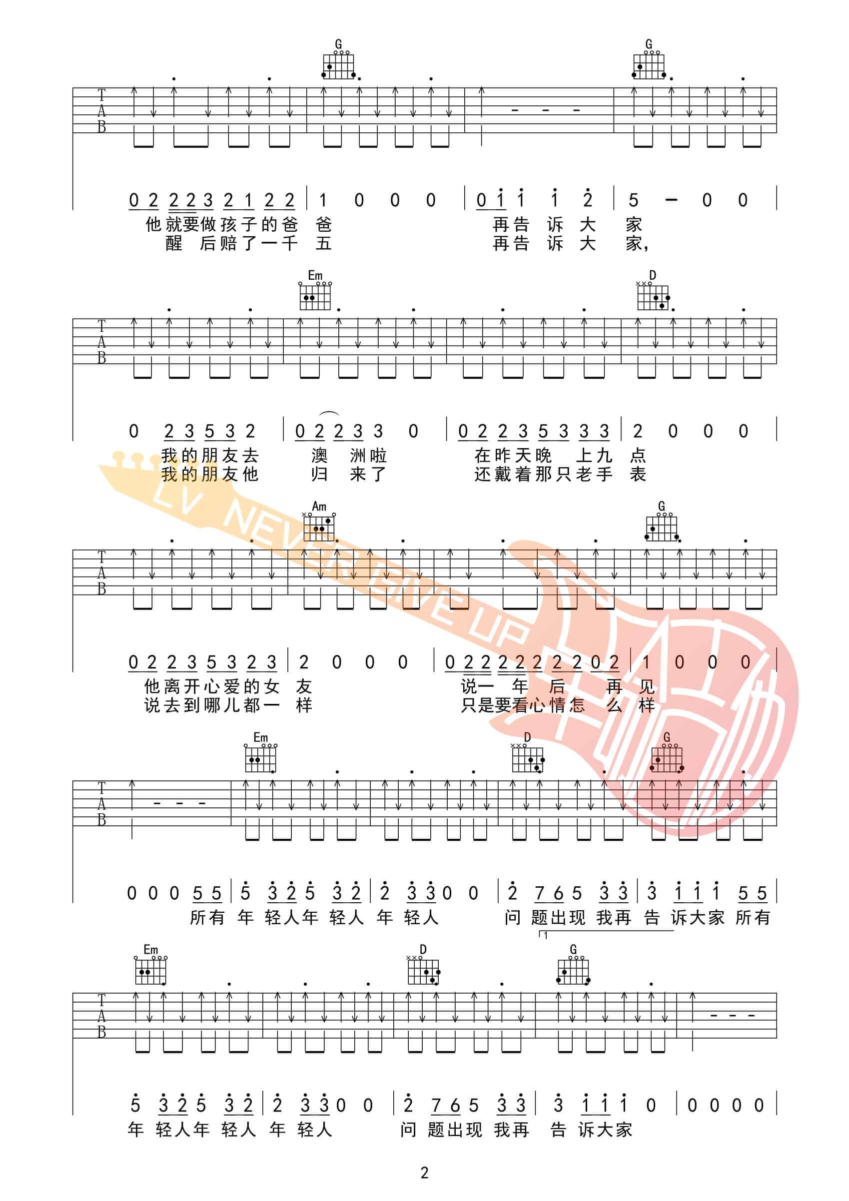 问题出现我再告诉大家吉他谱 - 五条人 - A调吉他弹唱谱