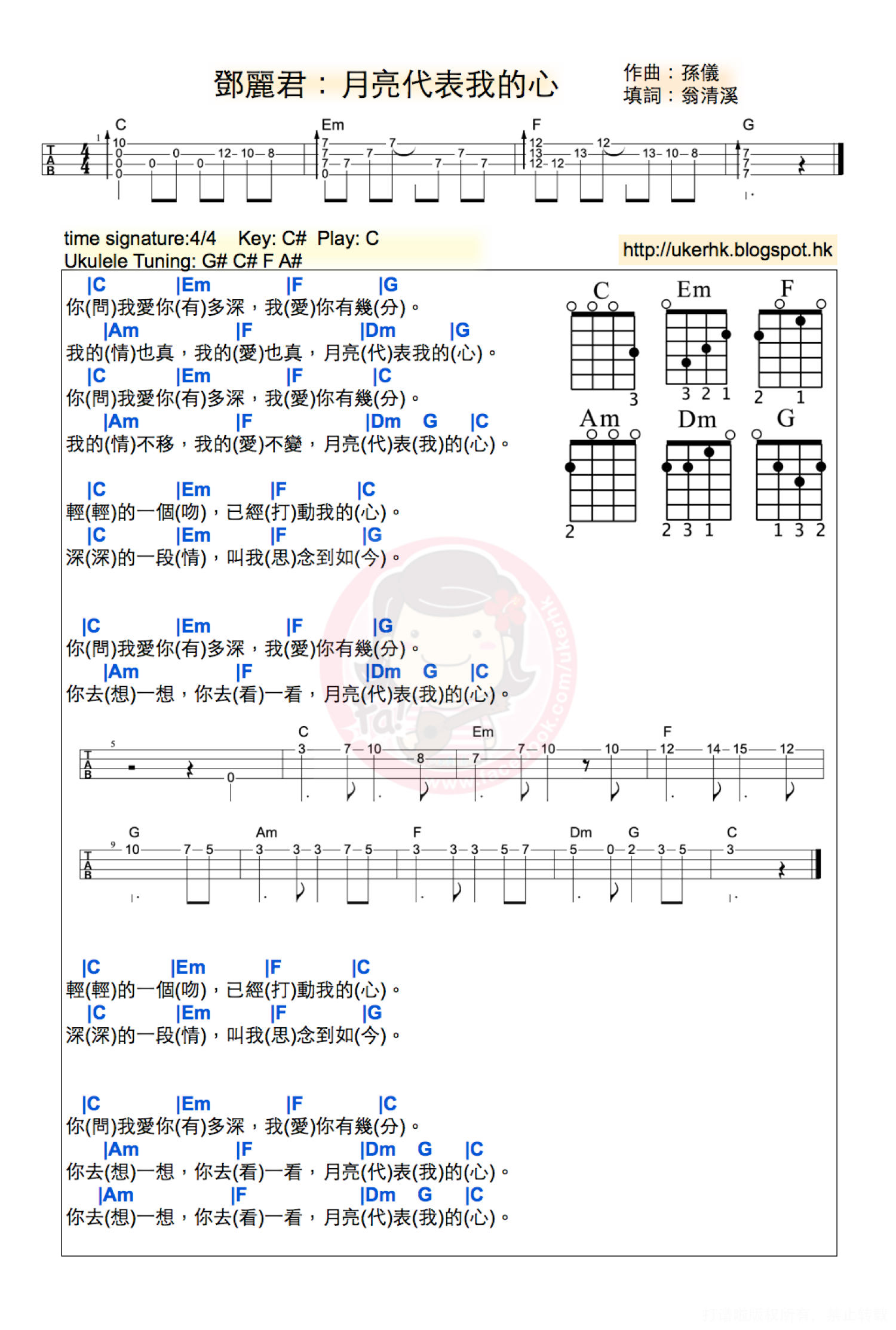 月亮代表我的心尤克里里谱 - 邓丽君