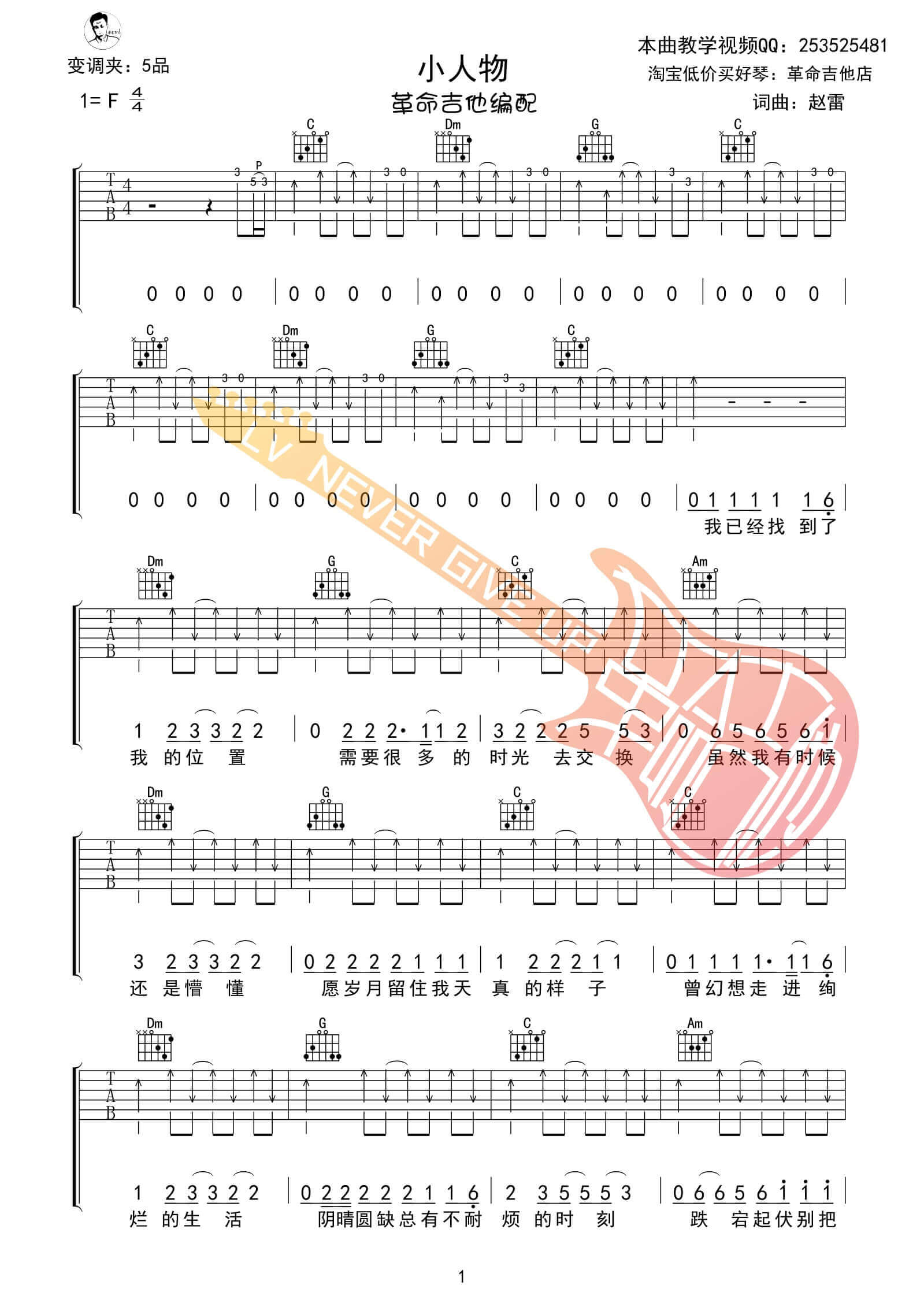 吉他弹唱F调来源:革命吉他346 浏览2024-02-08 15:52发布图谱共5页