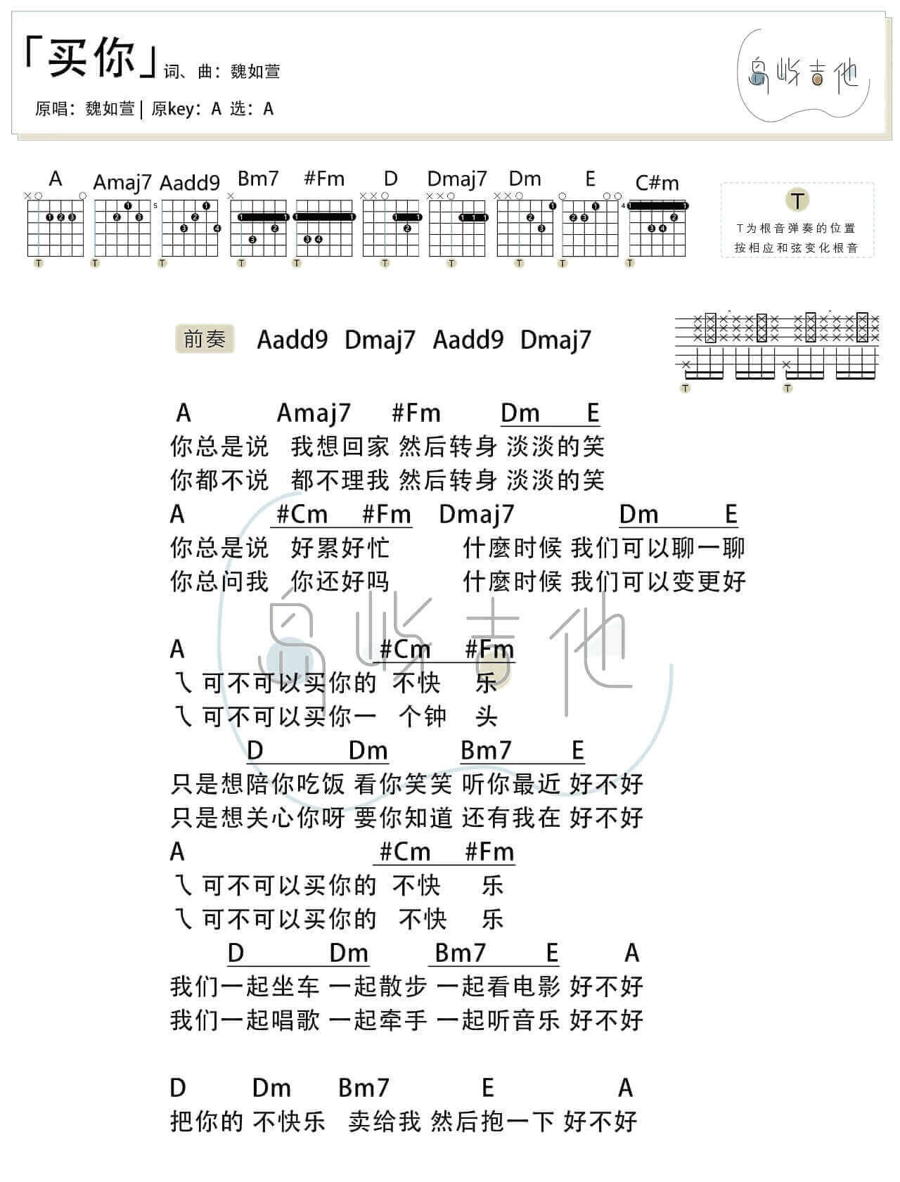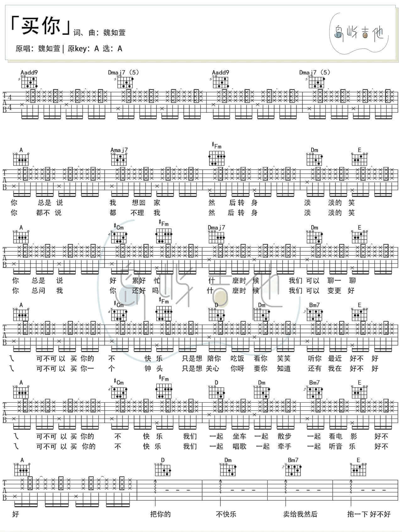 买你吉他谱 - 魏如萱​ - A调吉他弹唱谱