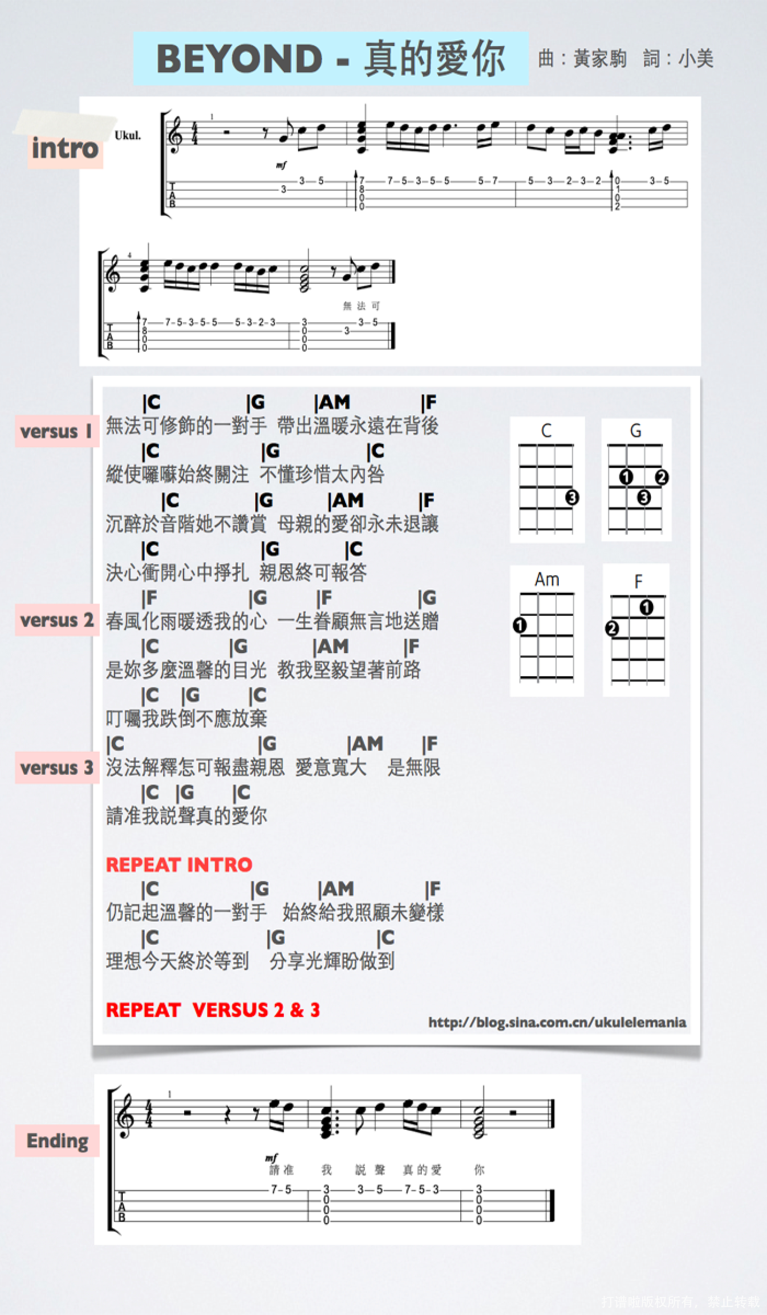真的爱你尤克里里谱 - beyond