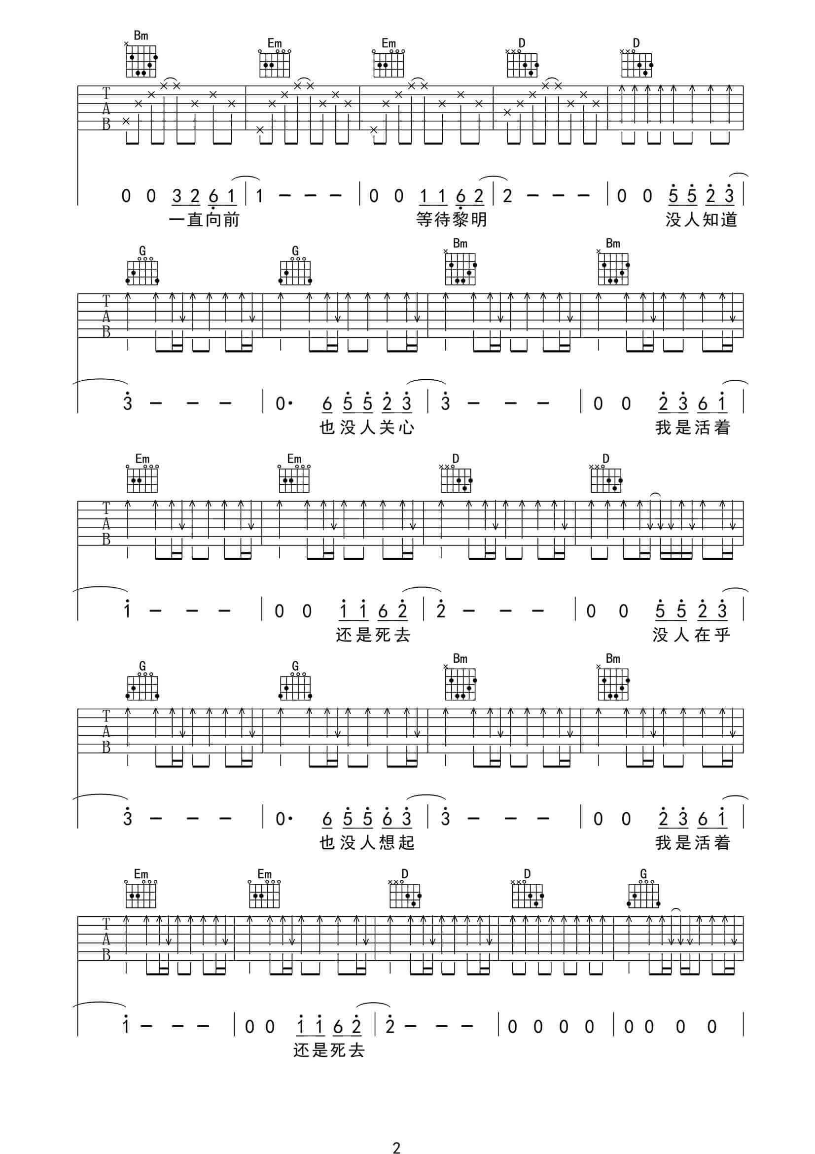 黑色公路吉他谱 - 张闯 - G调吉他弹唱谱
